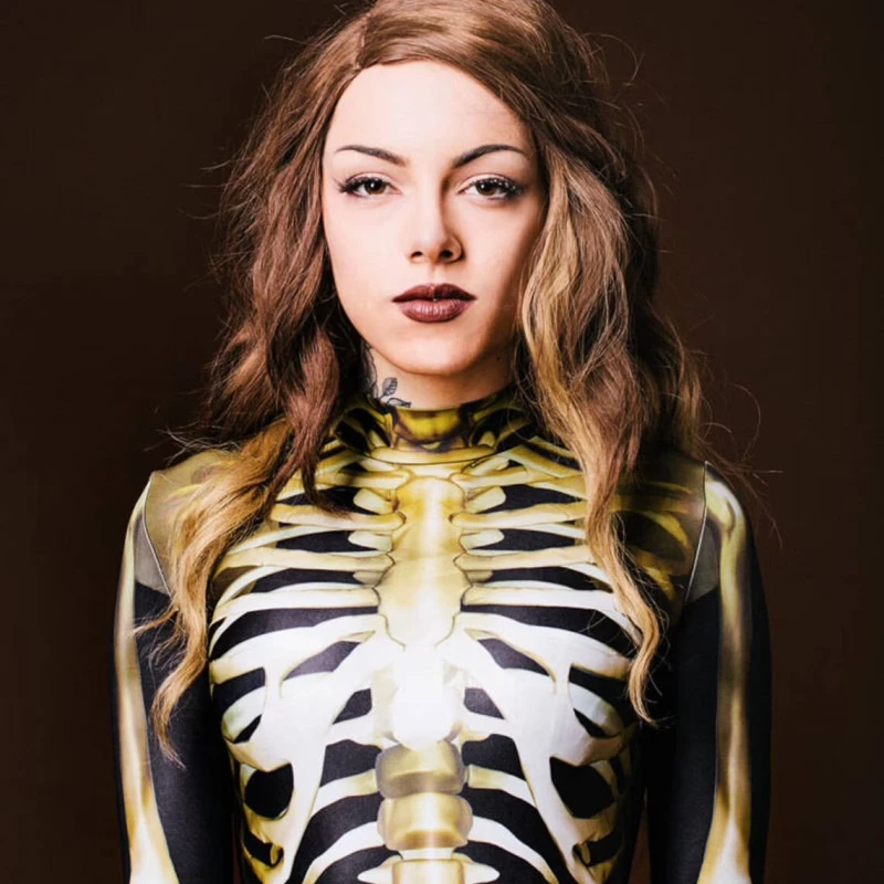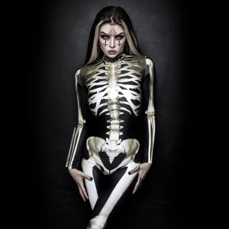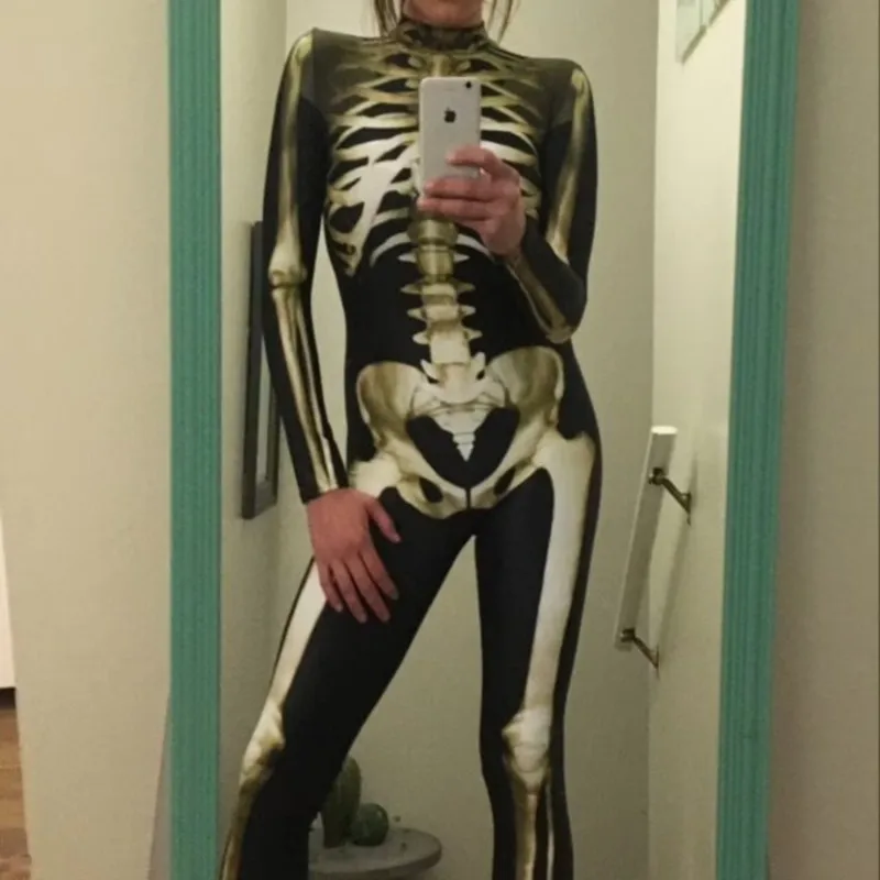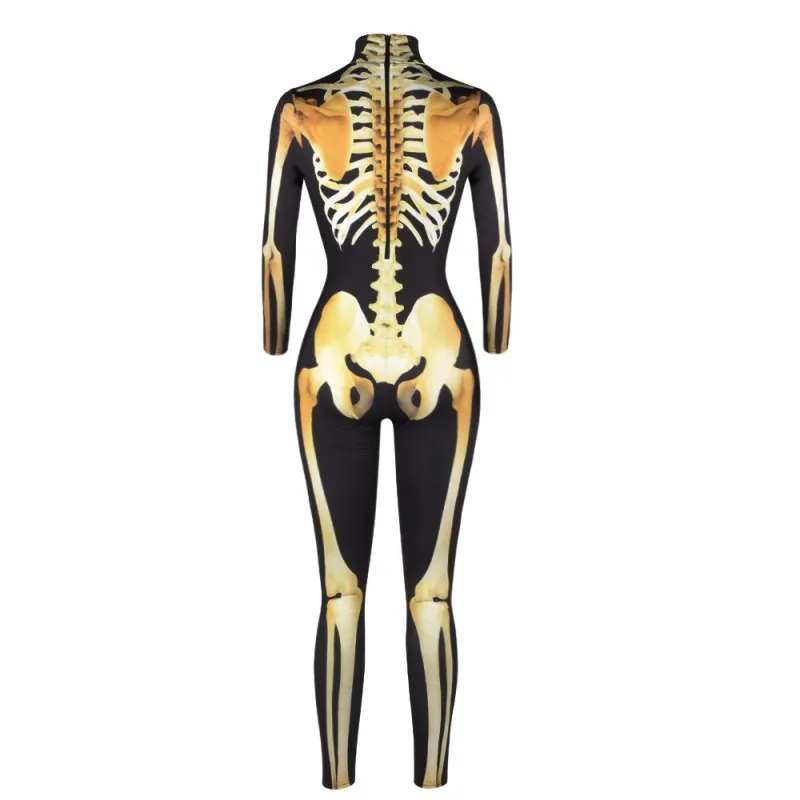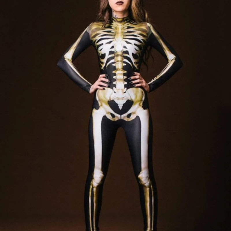 Женский Облегающий комбинезон с 3D-принтом черепа на Хэллоуин, костюм для косплея ужасов, карнавала, вечеринки, модный костюм с длинным рукавом для представлений, 2022