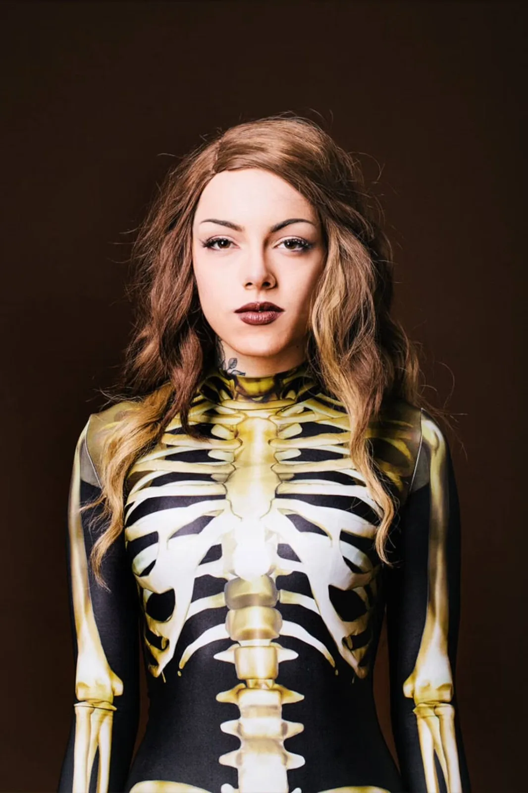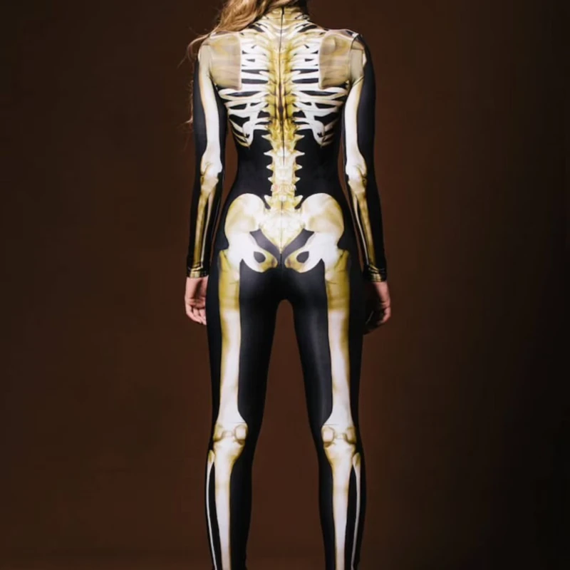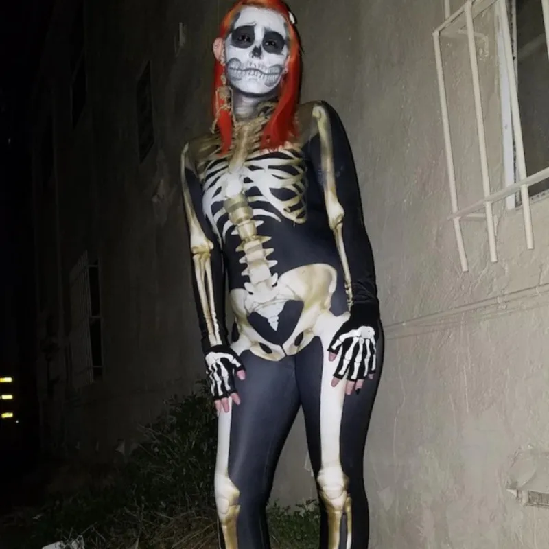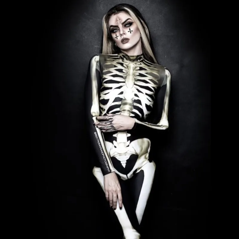 Женский Облегающий комбинезон с 3D-принтом черепа на Хэллоуин, костюм для косплея ужасов, карнавала, вечеринки, модный костюм с длинным рукавом для представлений, 2022