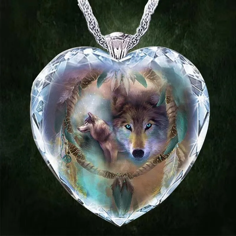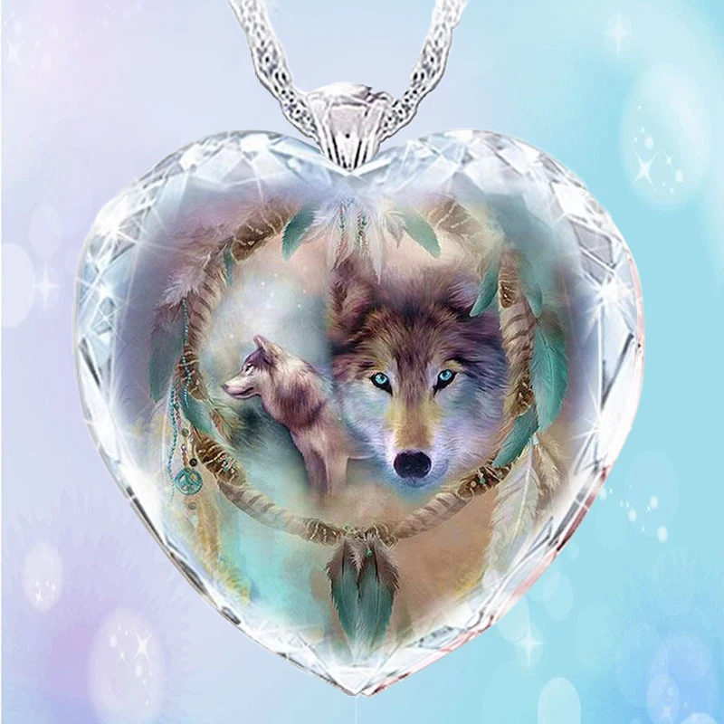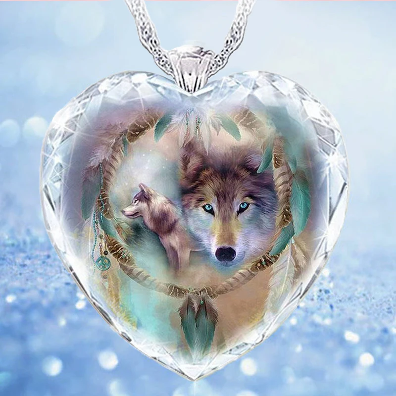 2021 ожерелье с подвеской в форме сердца из хрустального стекла, волк, тотем, Женское Ожерелье, металлические аксессуары в виде животных, ювелирные изделия для вечеринки, подарок