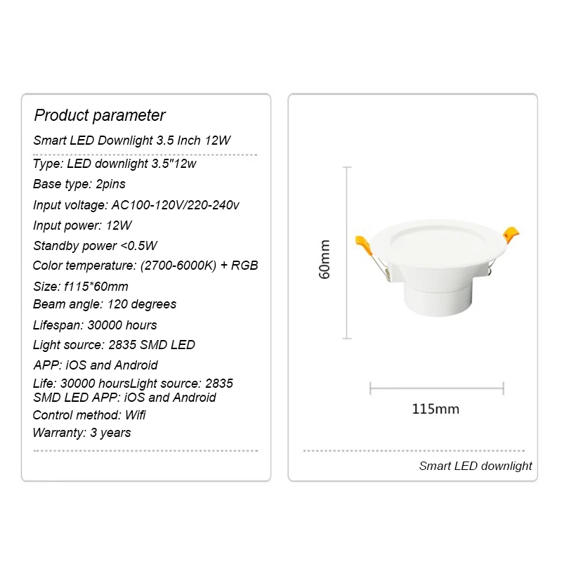 Утопленный Точечный светильник для Яндекс Алисы, умный дом, 12 Вт, Светодиодный точечный светильник с регулировкой яркости, RGBW, 2700K-6500K, работает с Ewelink Alexa Google