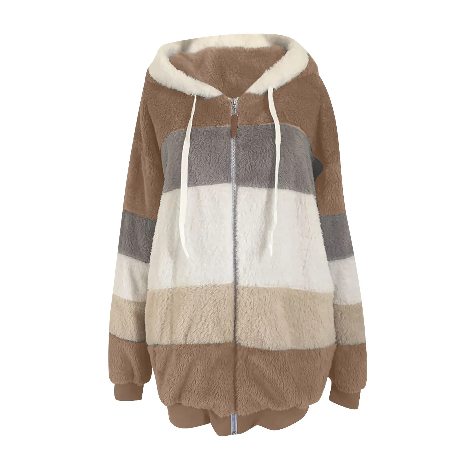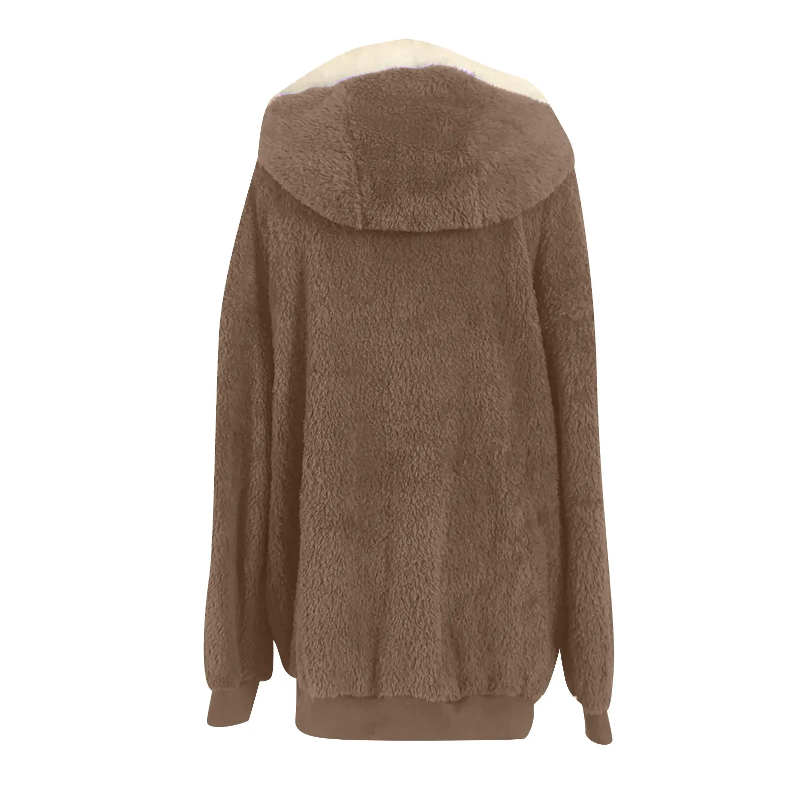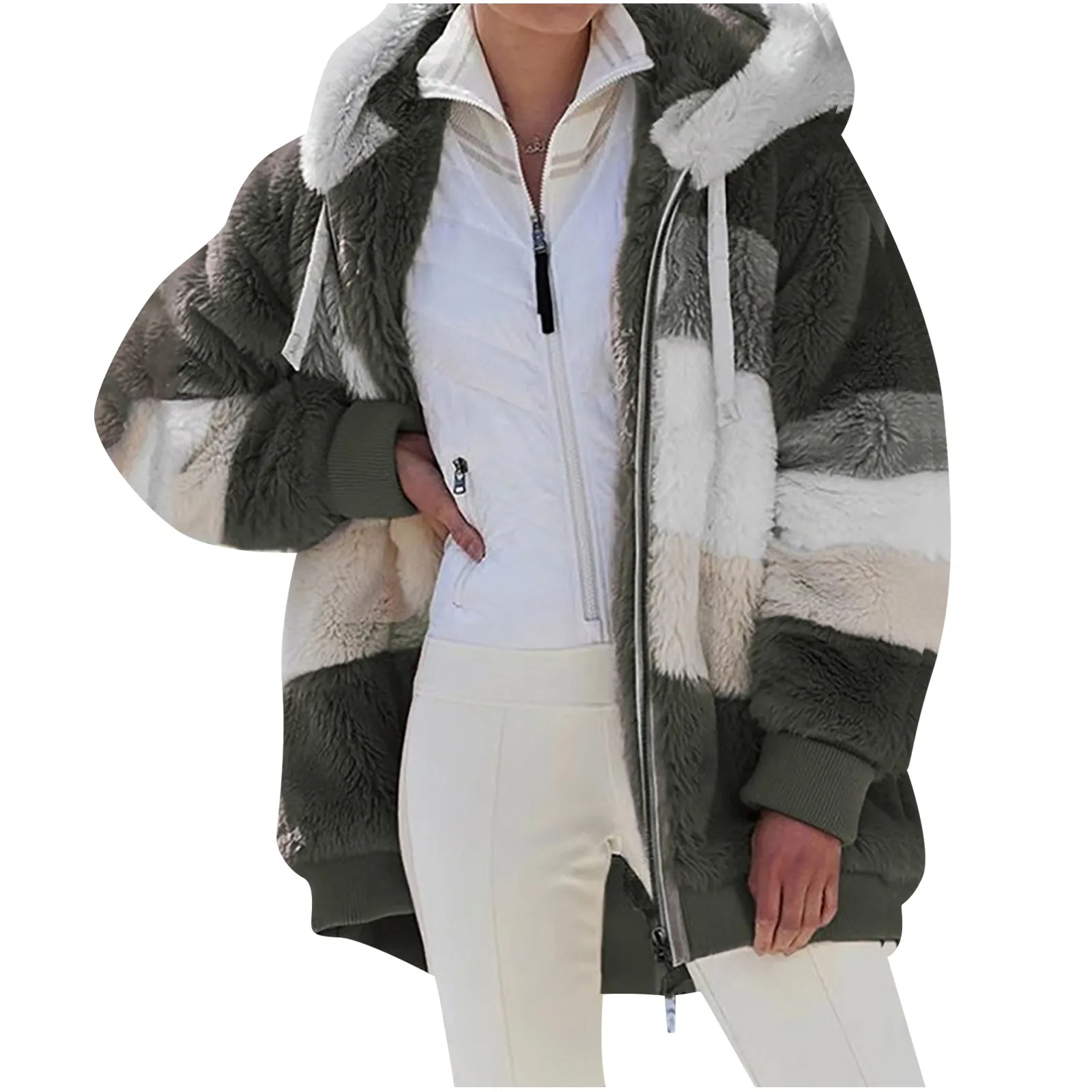 Женская плюшевая куртка на молнии, теплая Свободная куртка с капюшо...