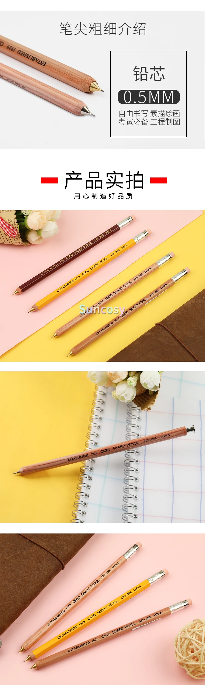 Механический карандаш OHTO 0,5 мм, Ластики для заточки оси дерева, рукоятка: натуральное дерево, кусок ртаудар: латунь
