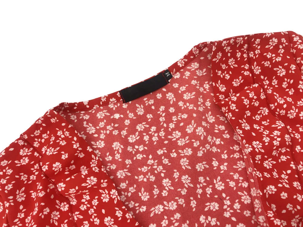Летнее женское Короткое платье-трапеция, с цветочными оборками и V-...