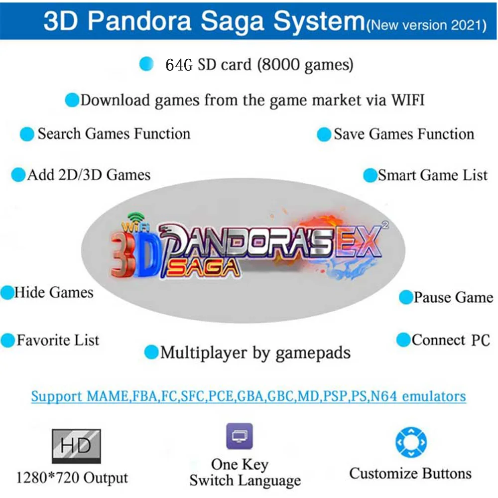 3D Pandora Сага EX Box 10000 в 1, Wifi market 128G SD карта, добавьте 2D 3D игру, поддержка до 4 игроков, многоязычная