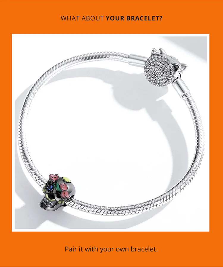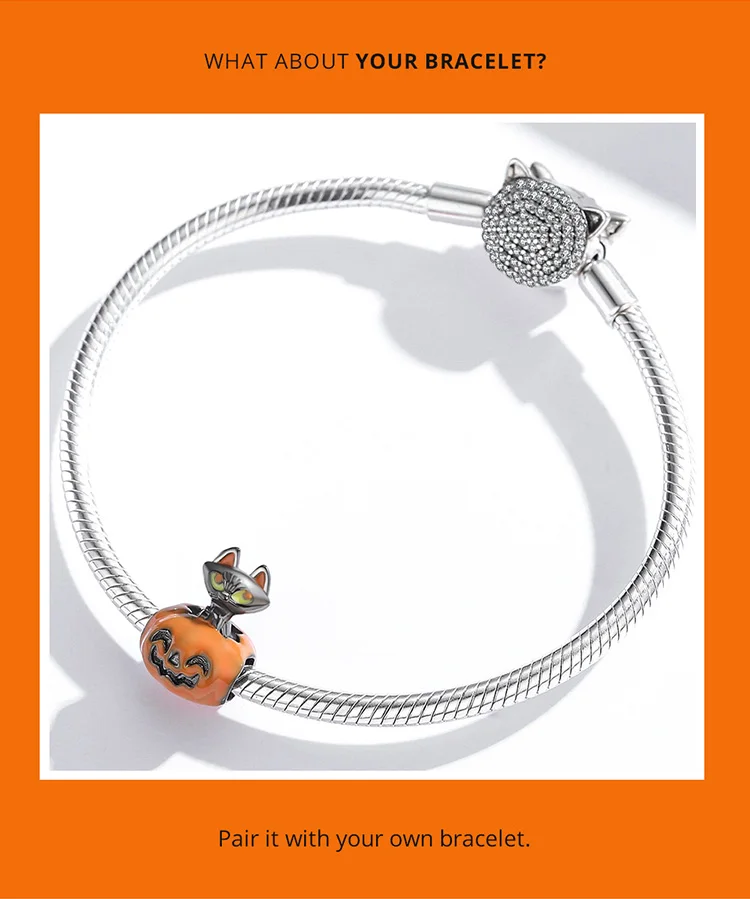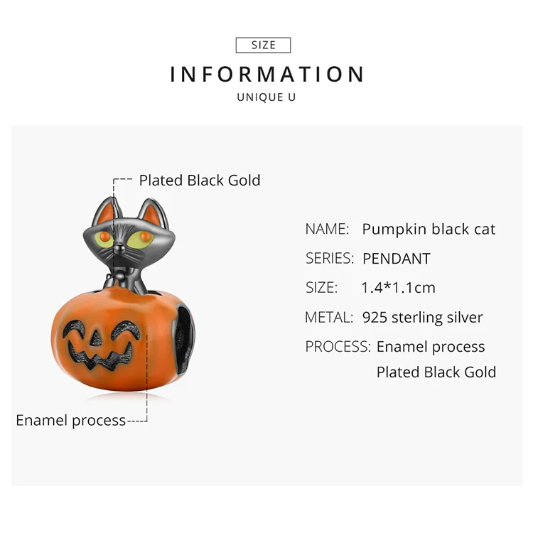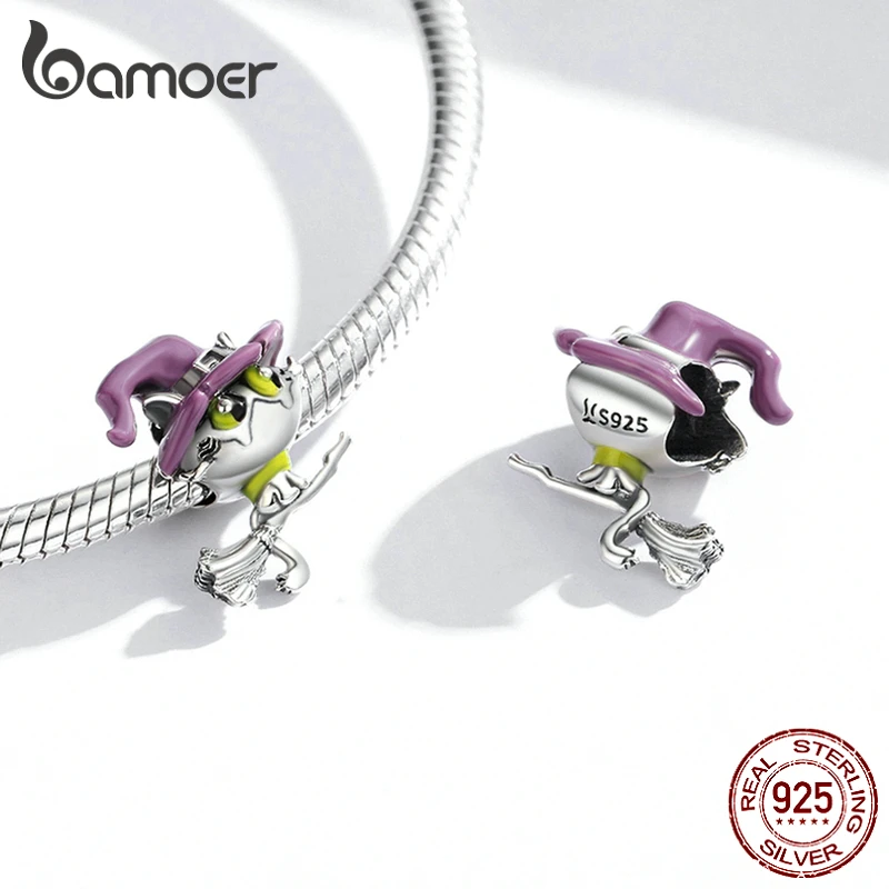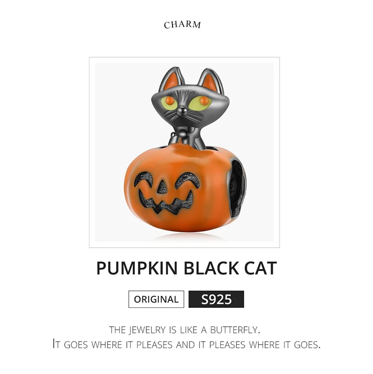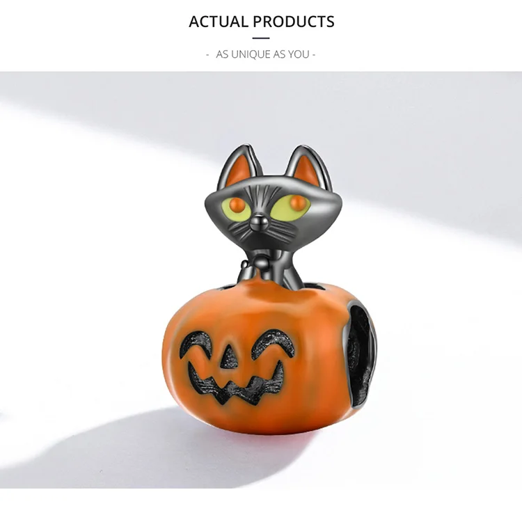 Bamoer, 925 пробы, серебряный, на Хэллоуин, Очаровательная тыква, Черный кот, роза, Череп, призрак, обувь, ведьма, кошка, джентльмен, Череп, бисер для браслета