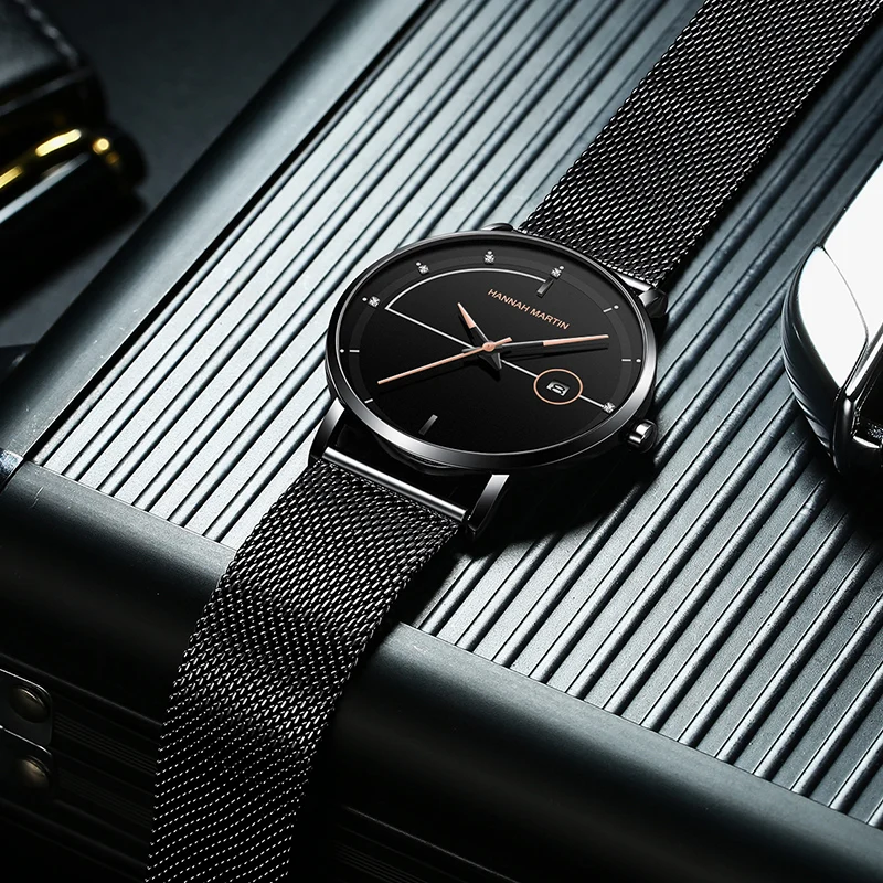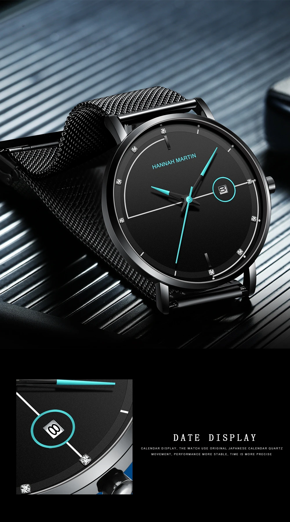 Часы Hannah Martin Мужские кварцевые, модные стальные водонепроница...