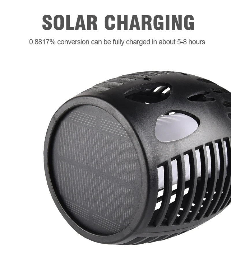 -Питание от солнечной энергии: это наружное пламя солнечных факелов собирает солнечную энергию в течение всего дня под прямыми солнечными лучами, затем включается автоматически в сумерках. Светильник работает на солнечной энергии, поэтому вы можете разместить его в любом месте под прямым солнечным светильник!