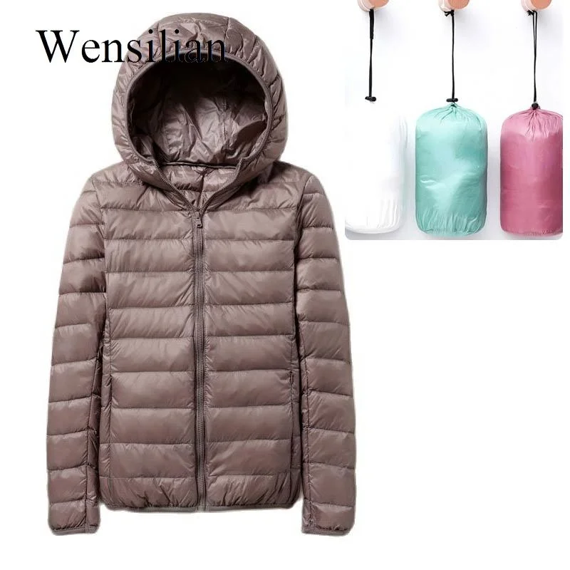 Зимняя Ультралегкая пуховая куртка, Женское пальто, легкие куртки с капюшоном, теплая парка с длинным рукавом и подкладкой, женское портативное пальто, верхняя одежда