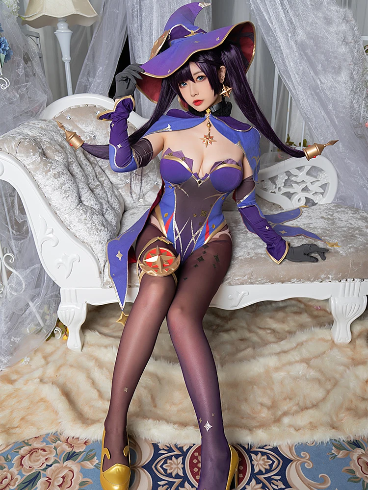 Genshin Impact Mona/костюм для косплея; Женская пикантная одежда; Униформа для Хэллоуина; Вечерние туфли с париком; Головной убор; Сережки; Игровое снаряжение