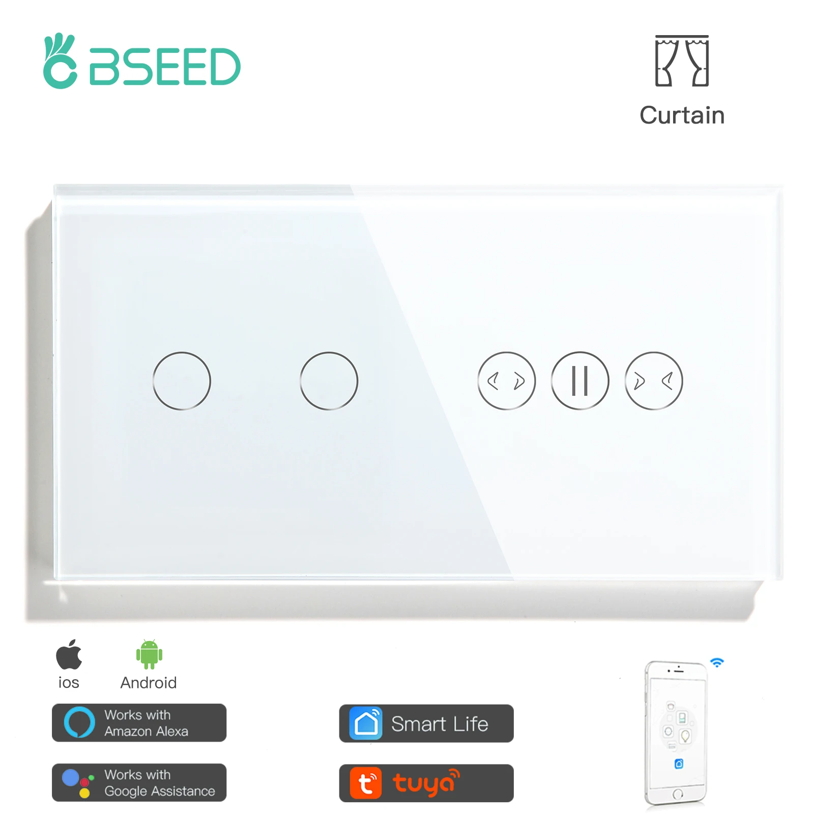 BSEED Wifi переключатель 2 банды с занавеской Wifi переключатель смарт-переключатель белый цвет поддержка для Tuya Google Assistant приложение для дома