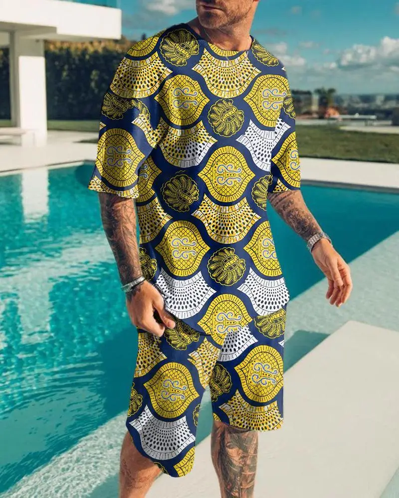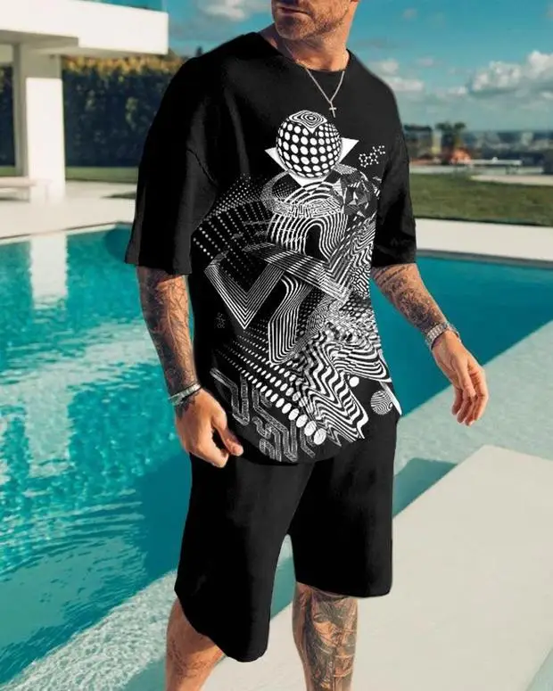Костюм спортивный мужской повседневный с короткими рукавами и 3D-пр...