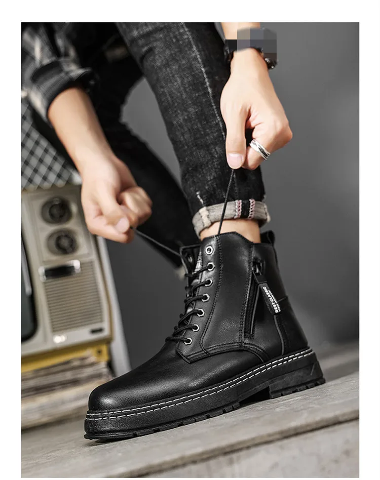 Мужские ботинки с высоким берцем, черные повседневные мотоциклетные...