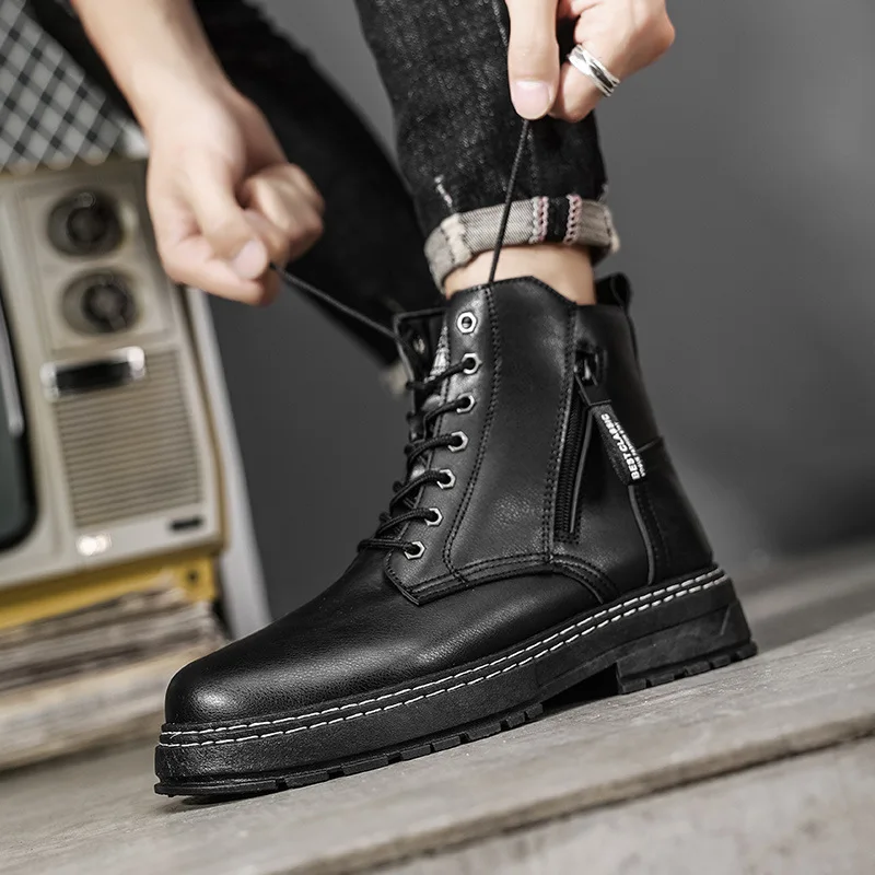Мужские уличные кожаные ботильоны, Нескользящие, на молнии, Повседневная Удобная обувь на плоской подошве, модные черные кроссовки, осень-весна