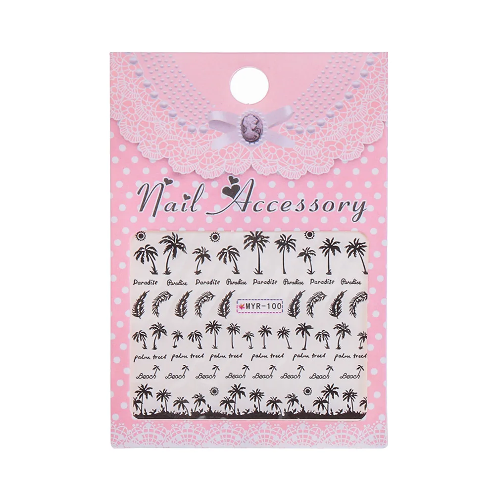3D наклейки для ногтей, 2 шт., тропический стиль, дизайн кокосового дерева, пальмовый узор, наклейки для ногтей, перенос воды декоративный для маникюра DIY