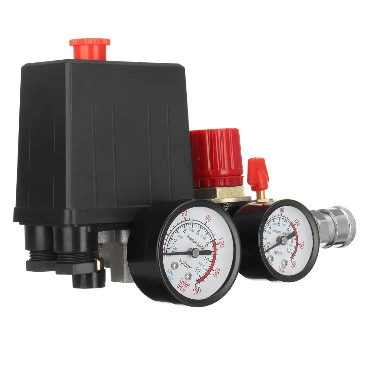 120 PSI переключатель давления для воздушного компрессора регулятор клапана управления манометры с быстрым разъемомМаксимальное напряжение: 240 ВМаксимальный номинал усилителя: 20 АДиапазон регулировки реле давления: 95 ~ 125 фунт/кв. ДюймДиапазон сброса Регулировка регулятора давления: 30 ~ 120 фунт/кв. ДюймДиаметр наружной резьбы: около 21 мм-1/2 дюйма NPT (для воздушного компрессора)Диаметр наружной резьбы клапана: 13 мм-1/4 дюйма NPTРазмер (Д * Ш * В): 21x15x12,5 смОсобенности:С 2 быстрыми разъемами.Автоматическое управление, автоматическая нагрузка/разгрузка.Имеется красная ручка включения/выключения, удобная конструкция для использования.Давление ниже 90 фунтов на кв. дюйм, включите компрессор. Давление выше 120 фунтов на кв. дюйм, выключите компрессор.Посылка1 x переключатель клапана давления воздушного компрессора с быстрым разъемом