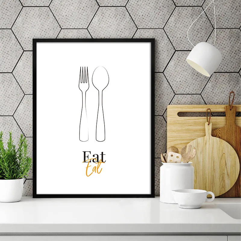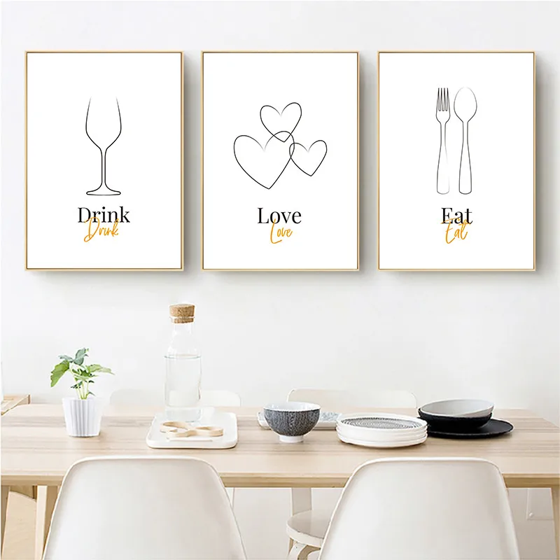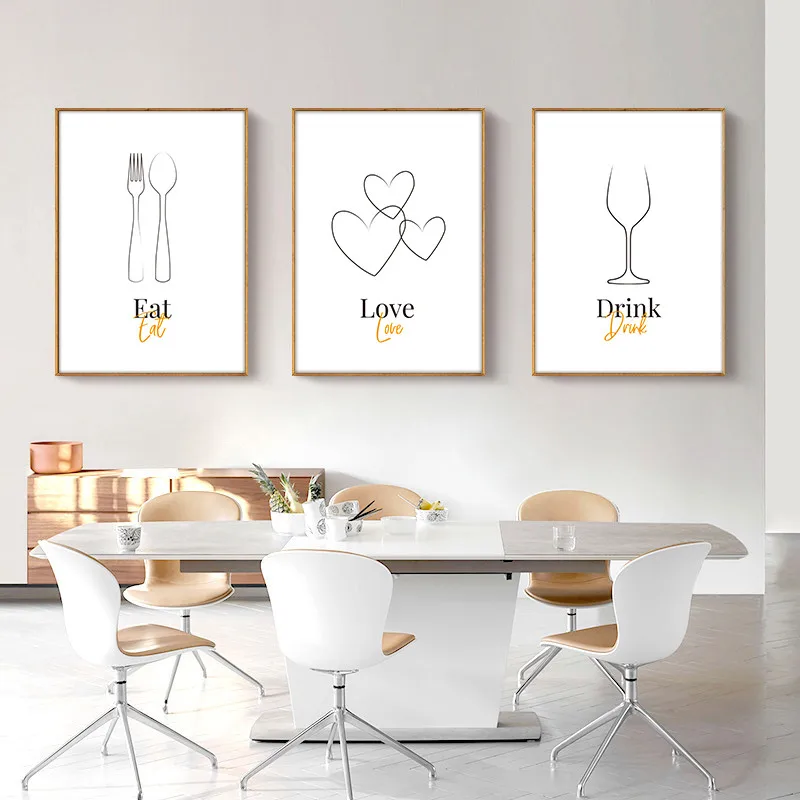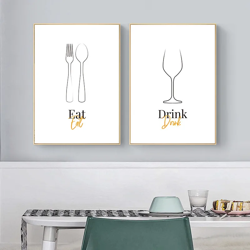 Минималистская абстрактная линия кухонной утвари, художественная живопись, постер, бокал для вина, печатная картина с ножом и вилкой, украшение для кухни