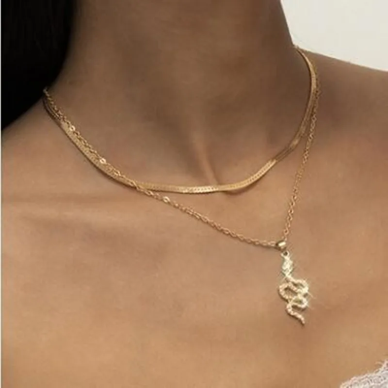 Ретро-многослойная Змея цепи ожерелье для женщин, трендовые, золото...
