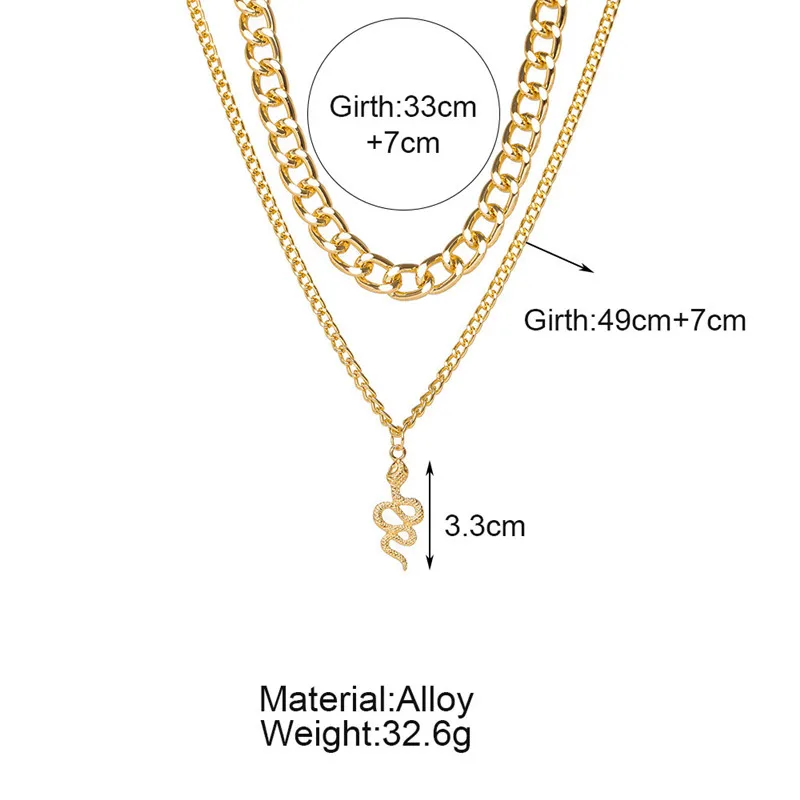 Модный новый многослойный Золотой и Серебряный женский кулон ожерелье панк хип хоп Рок Змея Форма толстая цепочка ожерелье ювелирные изделия подарок