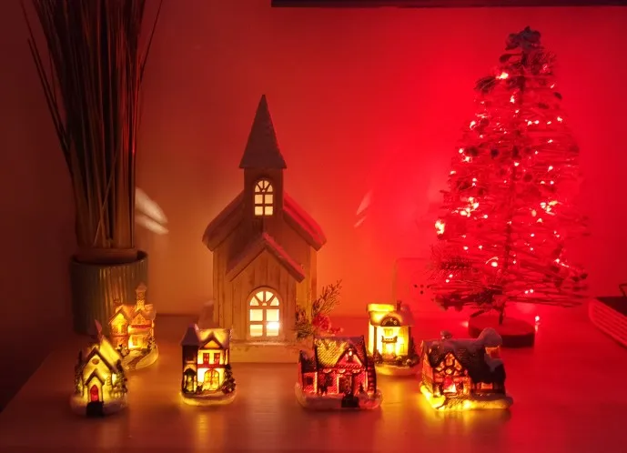 Рождественская сцена, деревенские дома, городское украшение с фотографией 2021, Рождественское украшение, детский подарок для домашнего декора