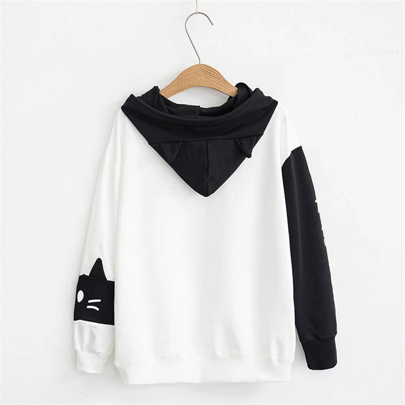 Женский пуловер с капюшоном, осенне-зимний пуловер с длинным рукавом и вышивкой в виде мультяшного кота, 2021