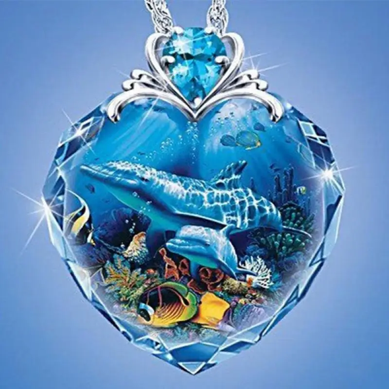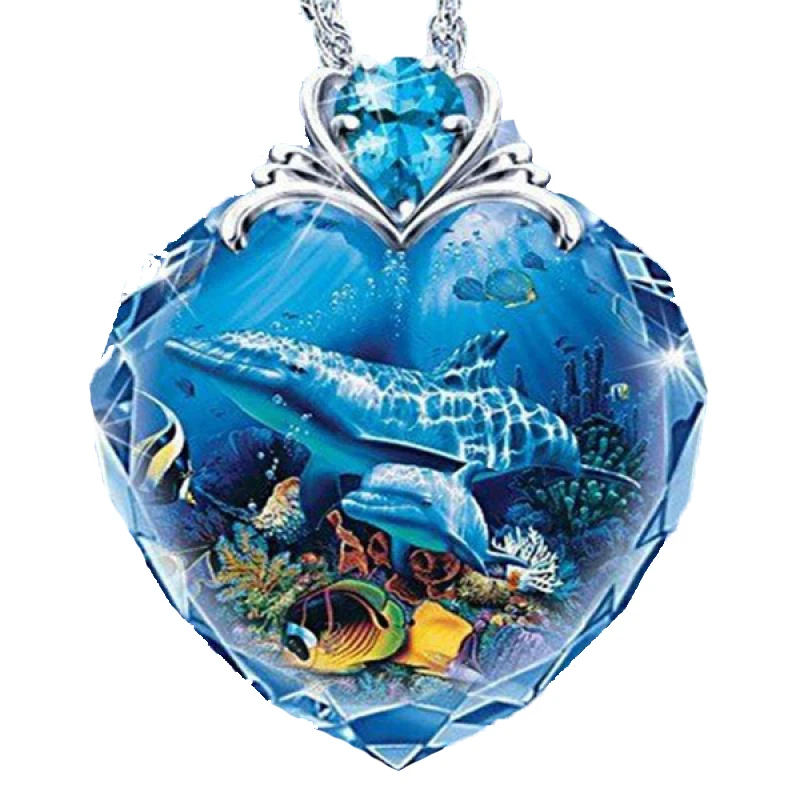 Новое ожерелье с подвеской в форме сердца из хрустального стекла под водой мир Кита Дельфин женское ожерелье аксессуары для животных Ювелирные изделия Вечерние