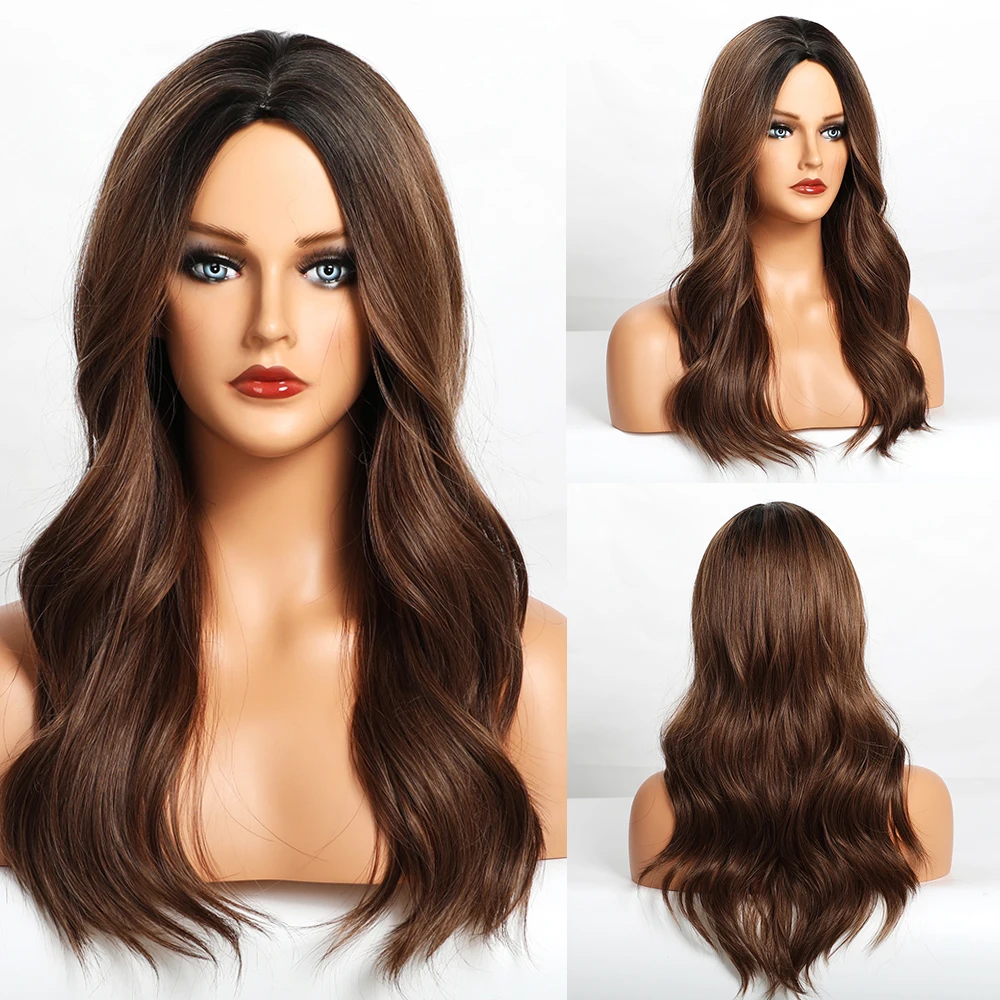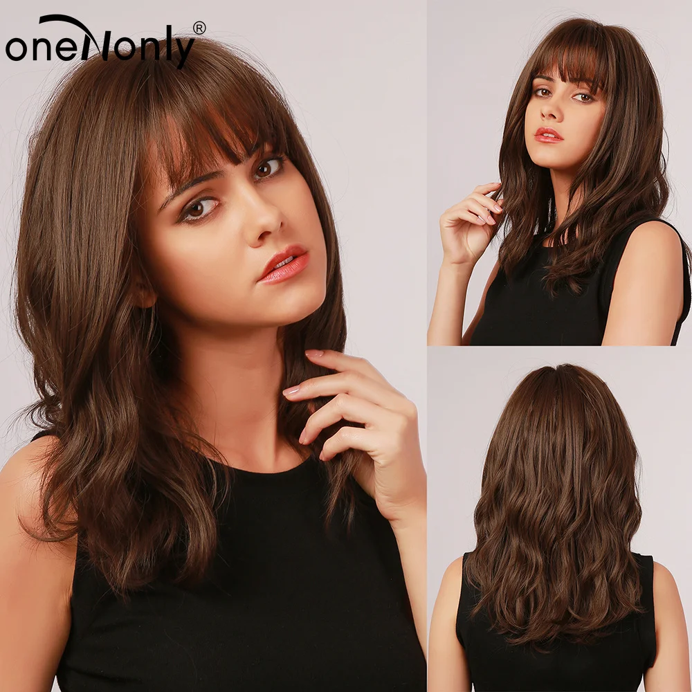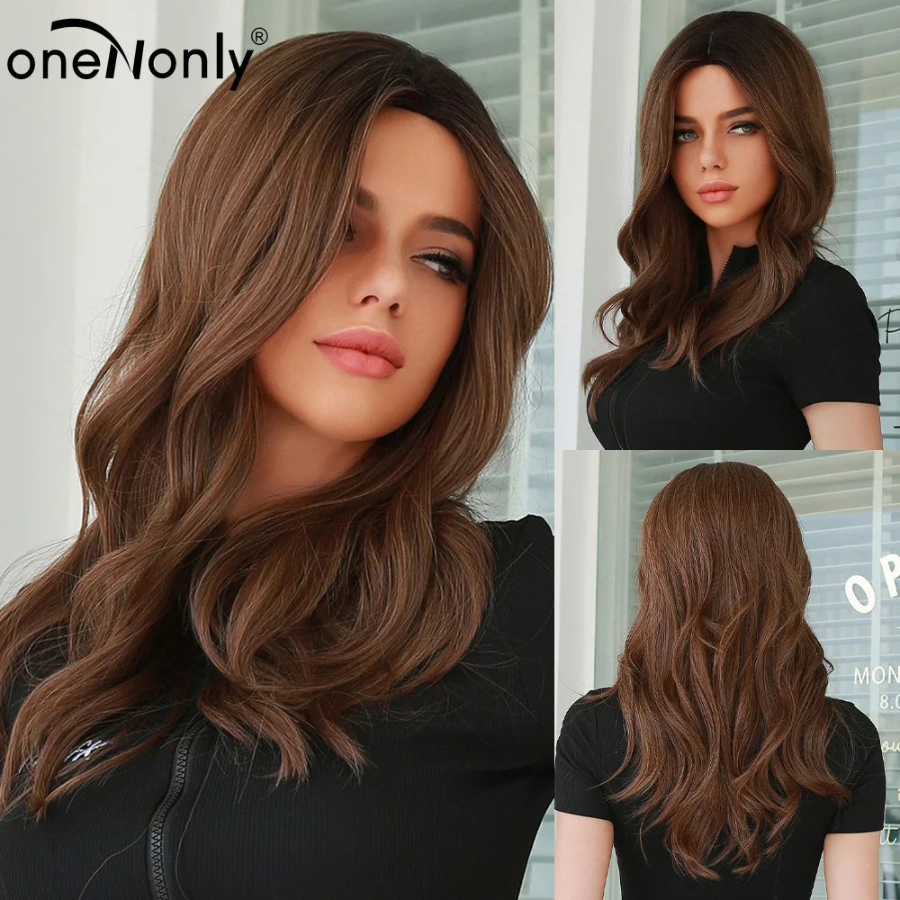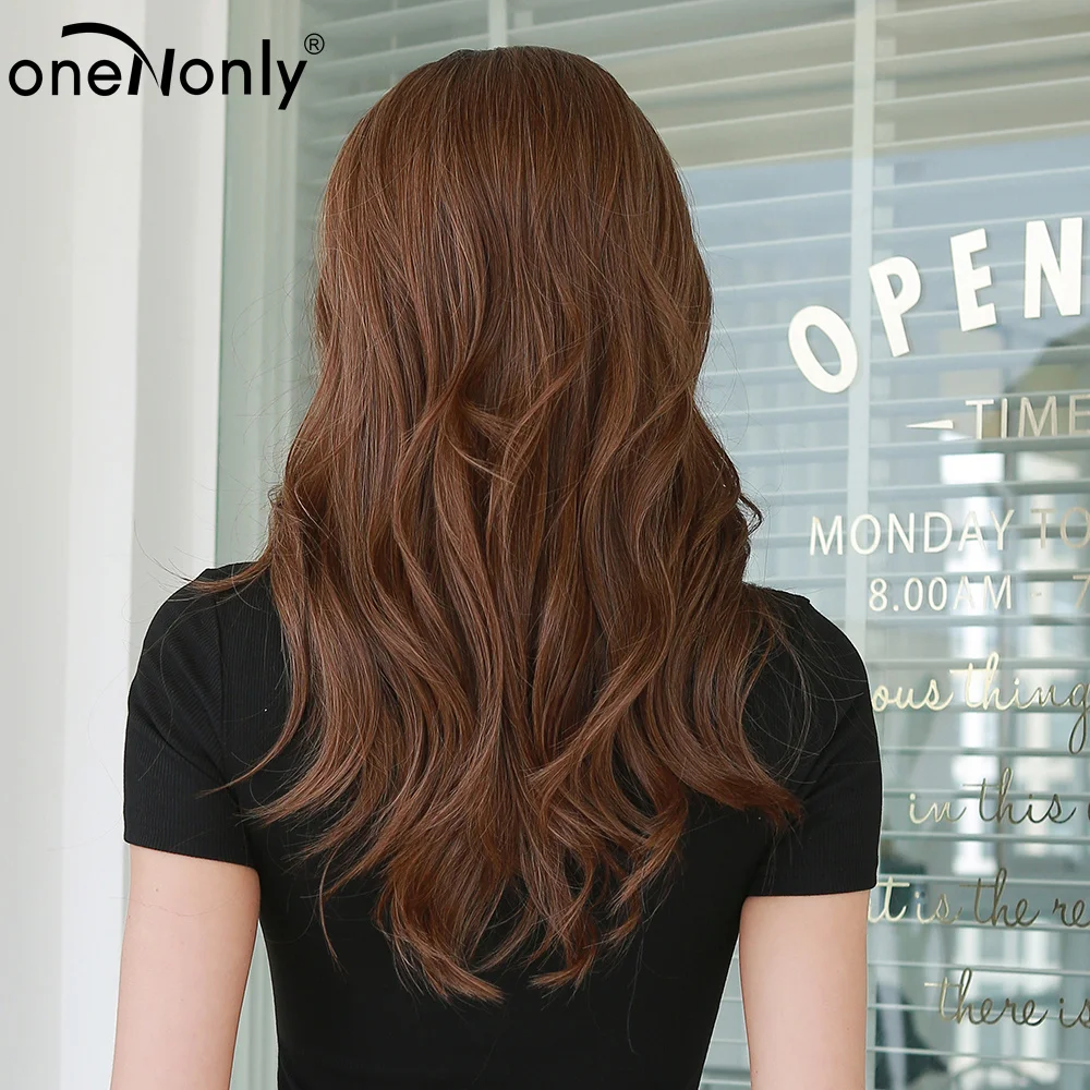 OneNonly синтетические парики для женщин длинные волнистые коричнев...