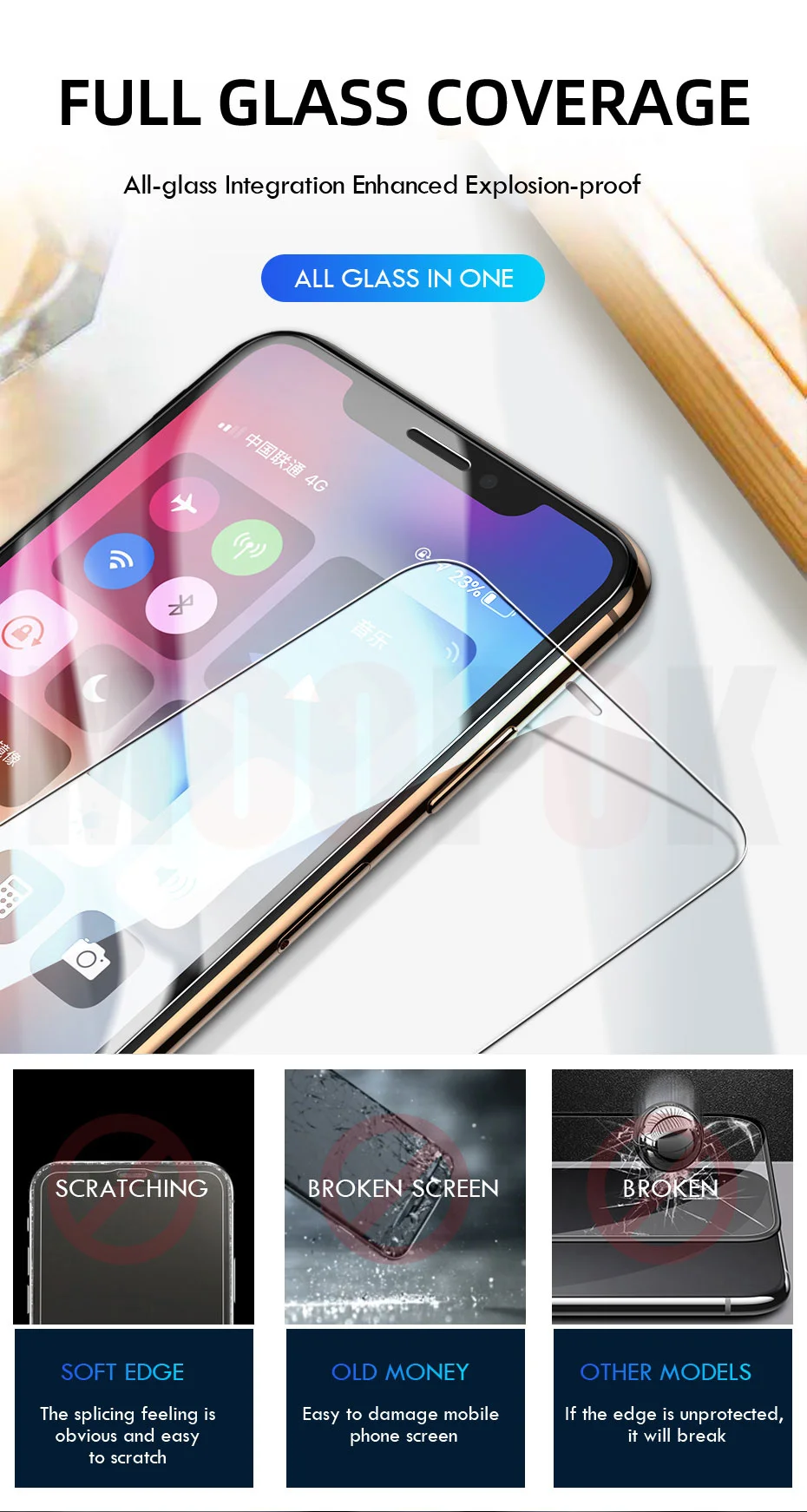 Защитное стекло на весь экран, для iPhone 7 8 6 6s Plus X XS Max XR...