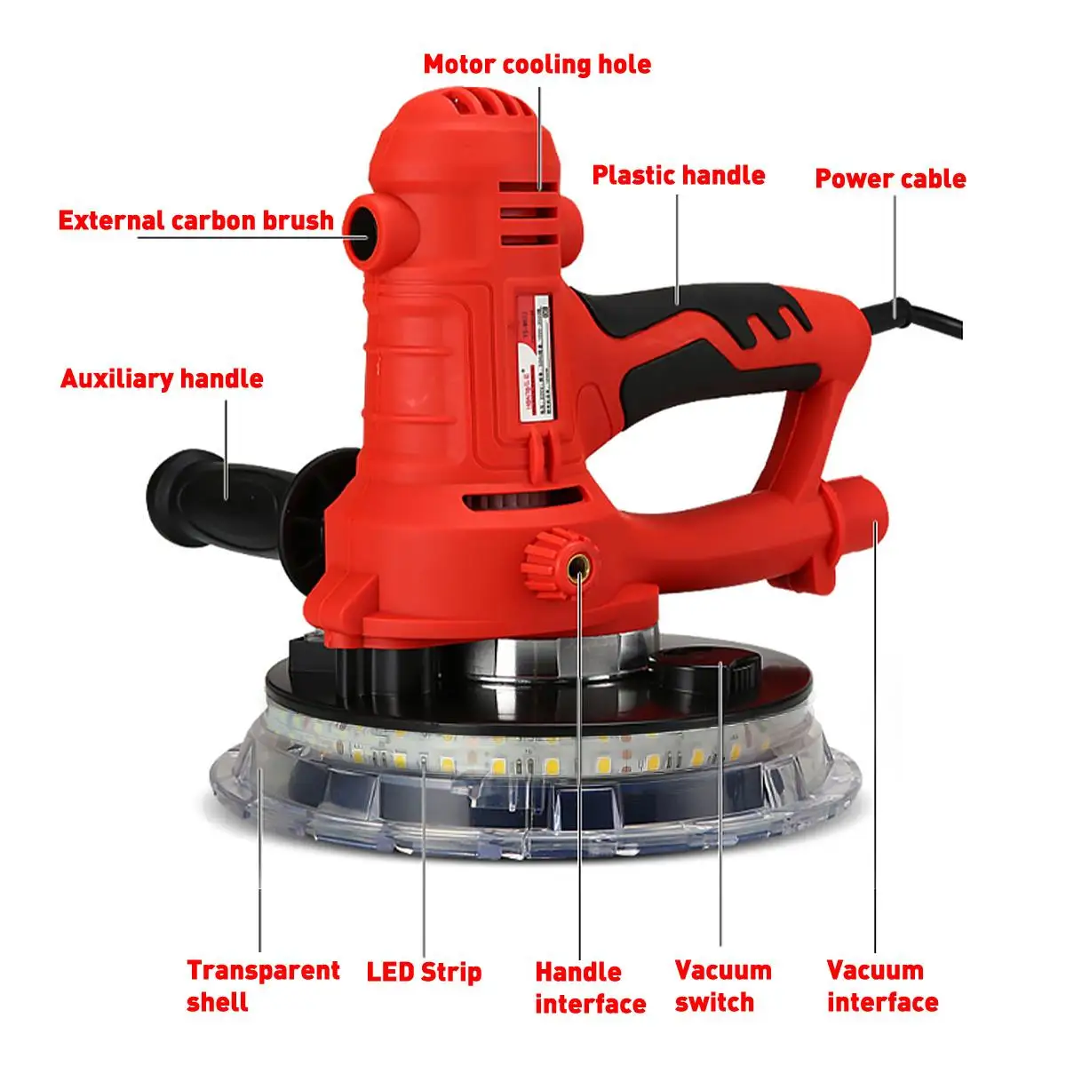 Посылка включает в себя:1 X шлифовальная машина для стен5 шлифовальных лент1 х шестигранный ключ4 х прокладка1 х вакуумный шланг1 х мешок для пыли1 х РуководствоХарактеристики:-Цвет: красный-Мощность продукта: 1250 Вт-Напряжение частота: 220V / 50HZ-Номинальная скорость: 1000-3500р/мин-Освещение: двойная лампа с освещением-Диаметр шлифовального диска: 180 ммОсобенности:● Дизайн отдельных переключателей, 6 скоростей.● Медный сердечник, высокая мощность, высокая термостойкость, более мощная производительность, стабильная и долгосрочная Адаптация к различным суровым условиям● Самоклеющийся шлифовальный диск, самоклеющийся шлифовальный диск.● Шлифовка тщательная, а стена не имеет следов песка. Подвесной шлифовальный диск и модернизированная наждачная бумага гладкие и деликатные● Подвесной 3 мм вверх и вниз, может автоматически приостанавливать 3 мм вверх и вниз для неровной поверхности стены, не будет никакого шлифования и дна.● 360 ° объемный, двойной светодиодный свет с освещением, реальный эффект освещения слепого пятна можно увидеть.● Двойная лампа с освещением, без мертвых углов для шлифования и сглаживания один раз на 360 ° без мертвых углов.● Система пылесоса вентилятора, полировка без пыли является более здоровой, пылесос чище, прощание с повреждением пыли, охрана окружающей среды и здоровья.Примечание:В разных производственных партиях характеристики товара могут немного отличаться. Если вы хотите узнать разницу, пожалуйста, покупайте внимательно.
