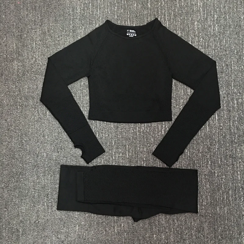 Женская Спортивная одежда для бега, бюстгальтер, Топ с длинным рукавом, спортивный комплект, бесшовная одежда для спортзала, йоги, женский дышащий простой спортивный костюм