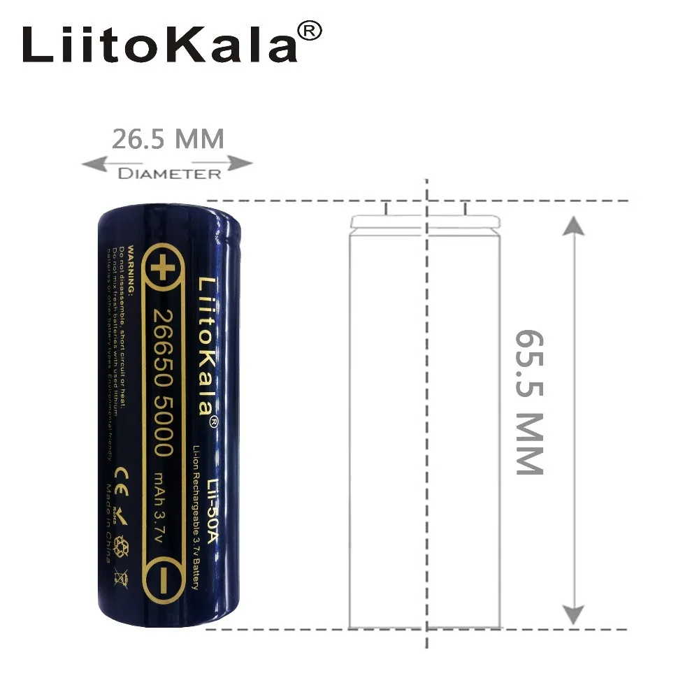 Аккумуляторная батарея, LiitoKala 26650, Подзаряжаемые батареи LiitoKala Lii-50A 26650 5000 mA, 1шт,2шт,3шт,4шт,5шт