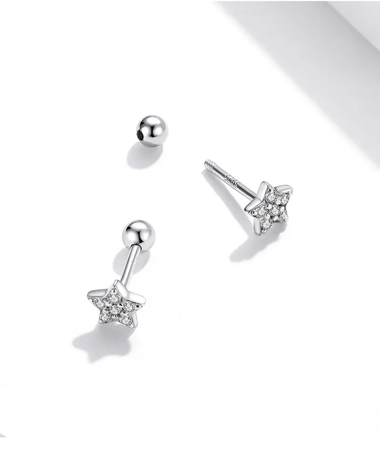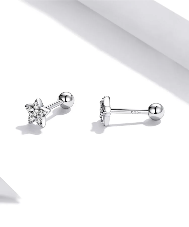 Серьги-гвоздики женские из серебра 925 пробы, с пятиконечной звездой