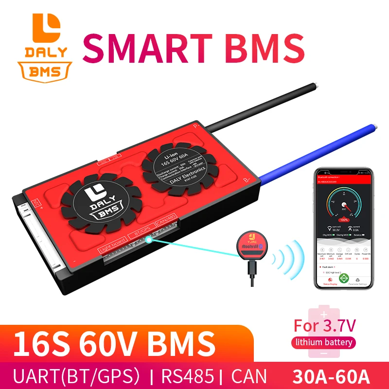 Daly 18650 smart BMS 16S 60V 30A 40A 60A Bluetooth 485 к USB устройству NTC UART программное обеспечение togther Lion LiFepo4 батарея BMS ◆ В настоящее время все умные BMS без водонепроницаемой функции. ◆ Эта ссылка предназначена для литий-ионного аккумулятора 16S 60V. Пожалуйста, заполните параметр после размещения заказа, чтобы обеспечить SOC правильной информацией.