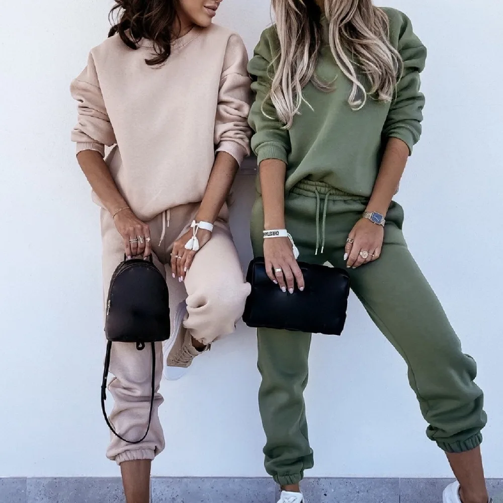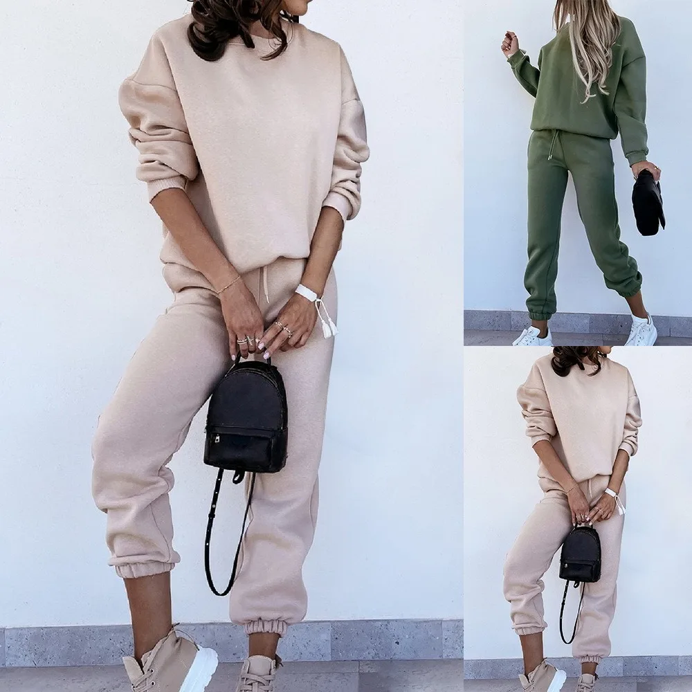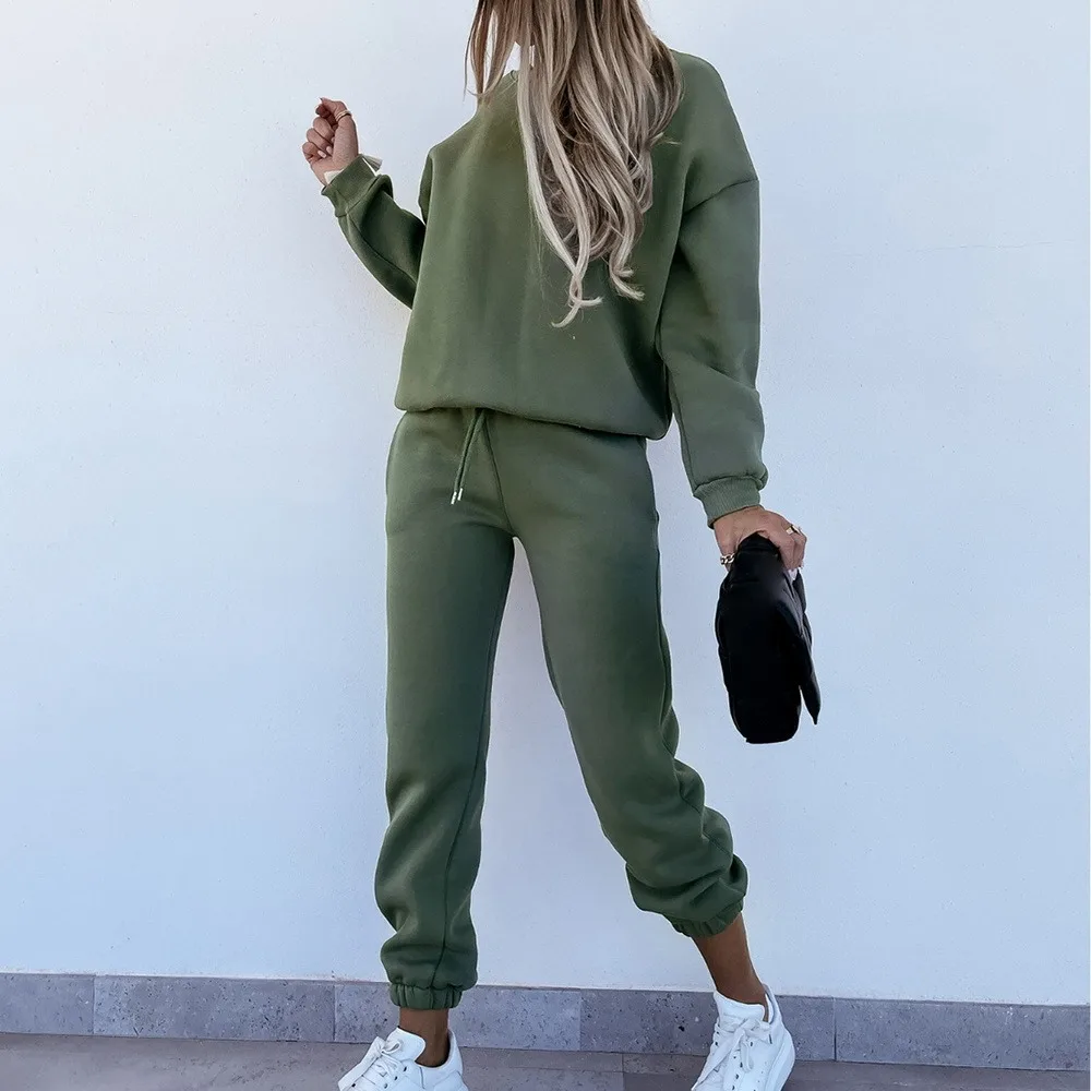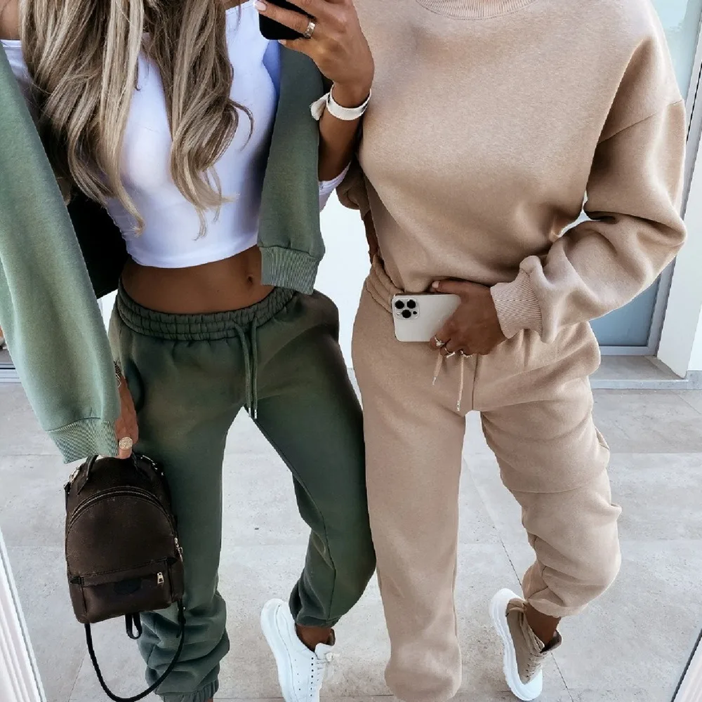 Женский спортивный костюм, свитшот с высоким воротником и штаны на шнуровке, женские спортивные костюмы, осень 2021, Повседневный пуловер с длинным рукавом, спортивный комплект