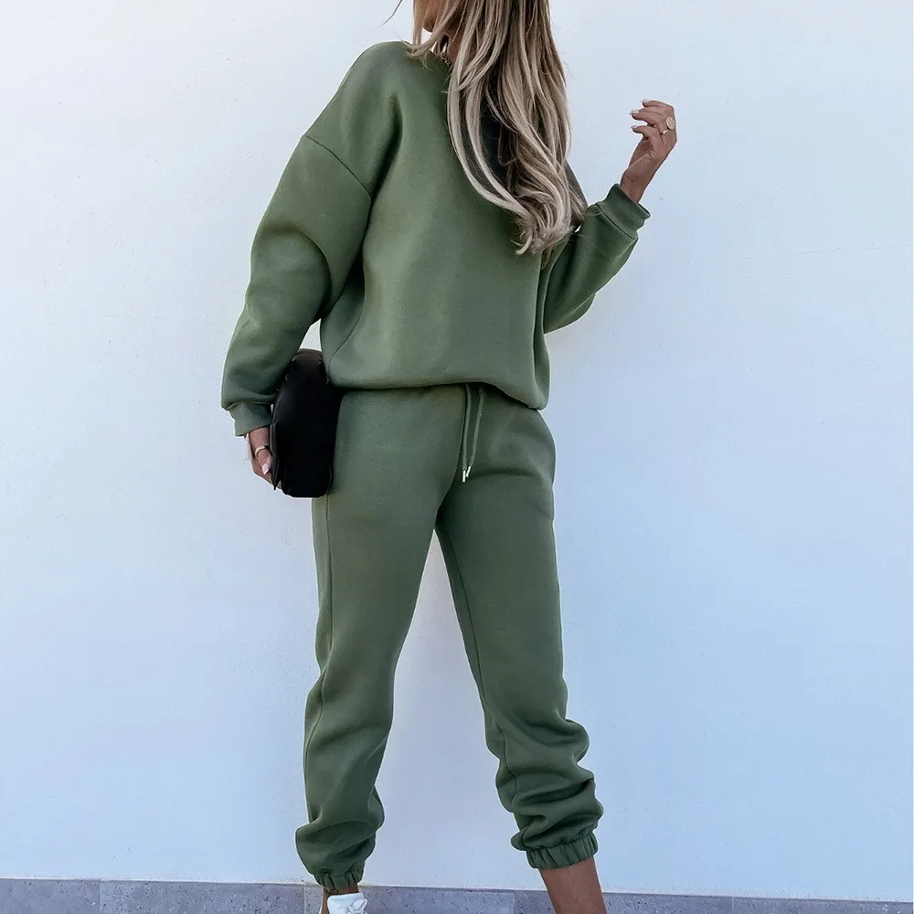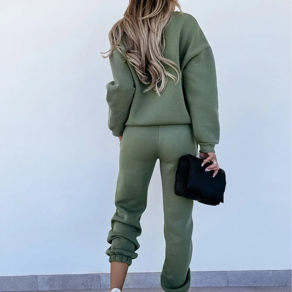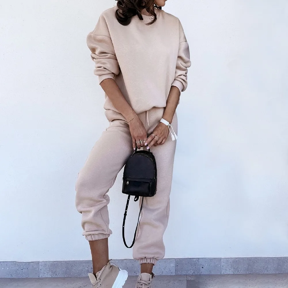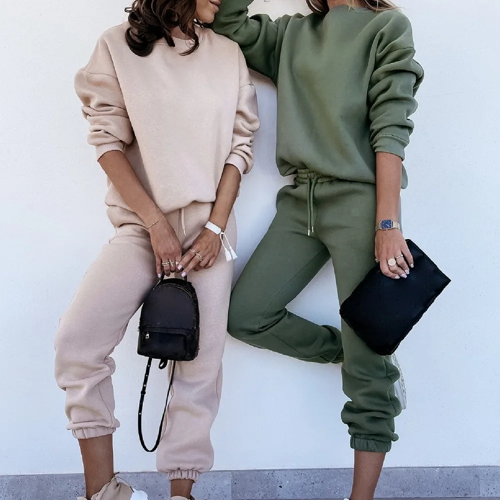 Женский спортивный костюм, свитшот с высоким воротником и штаны на шнуровке, женские спортивные костюмы, осень 2021, Повседневный пуловер с длинным рукавом, спортивный комплект