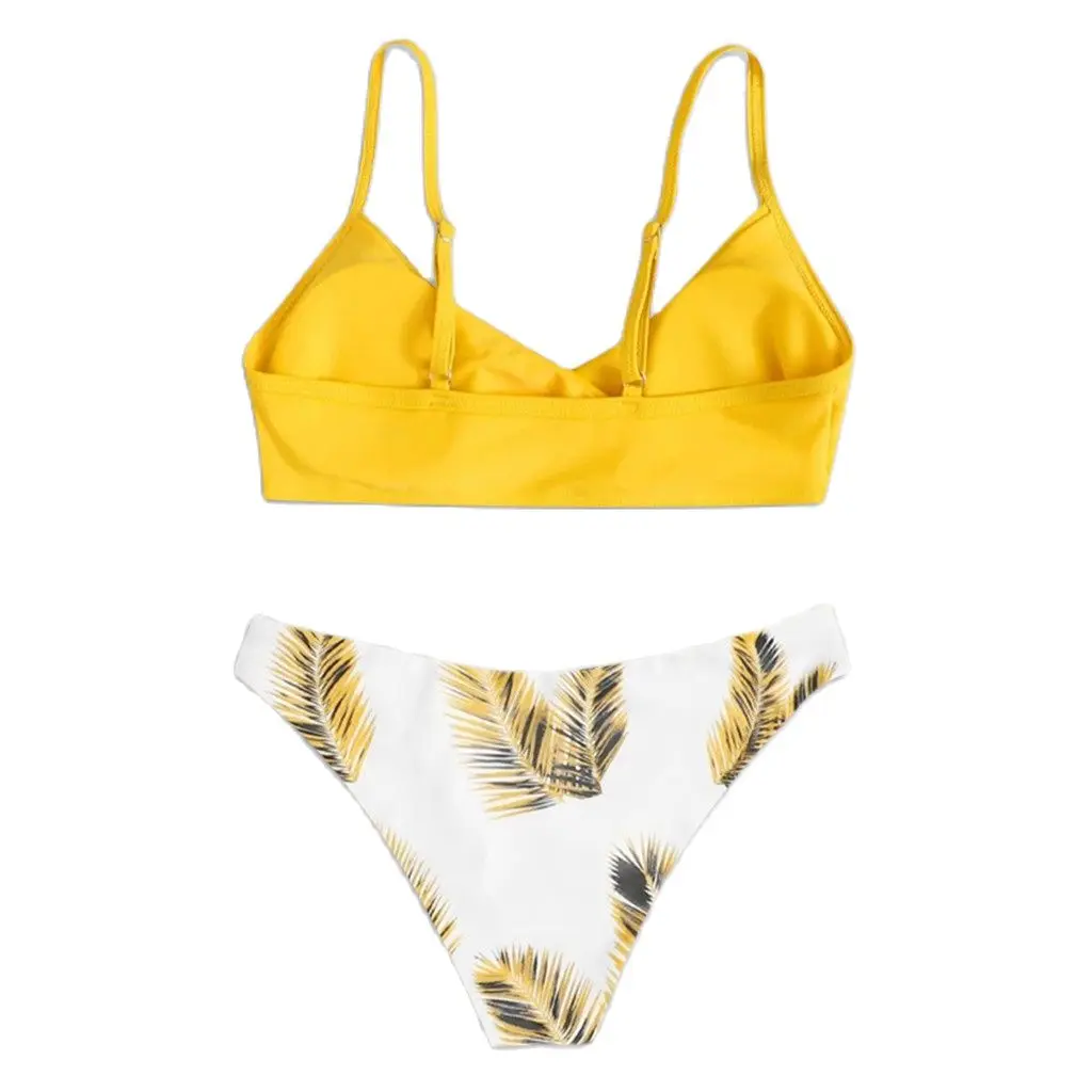 Женский комплект бикини с принтом листьев, модель 2022 года, комплект бикини с чашками пуш-ап, Купальник, пляжная одежда, Мягкий Купальник, Женский Купальник