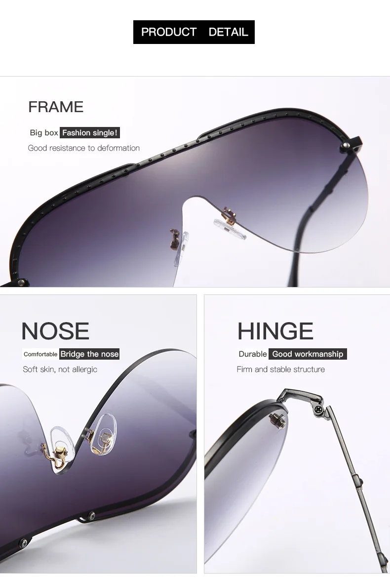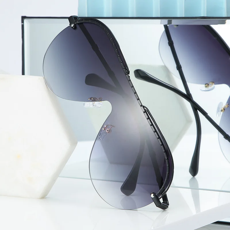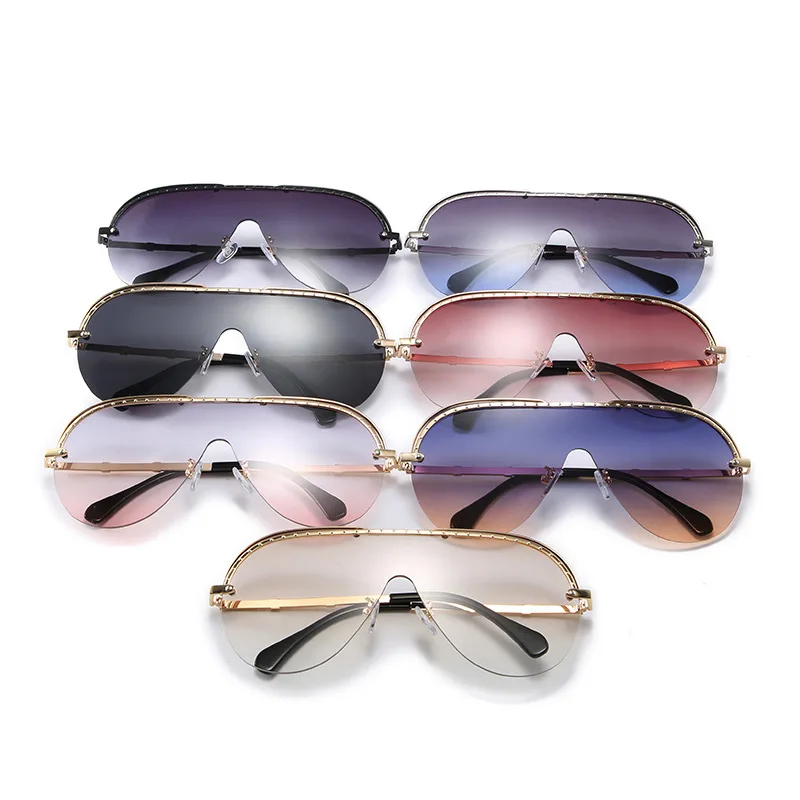 Женские солнцезащитные очки без оправы, синие и желтые градиентные очки без оправы из металла, роскошные брендовые дизайнерские очки