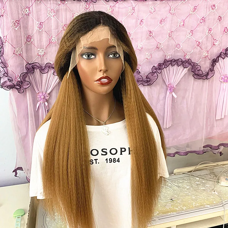 Прямые Парики Yaki на сетке спереди, афро расческа, синтетический парик с Омбре, блонд, курчавые прямые парики 1B 27 цветов с детскими волосами для черных женщин