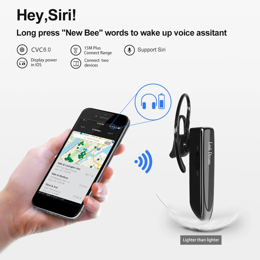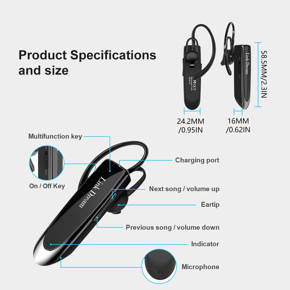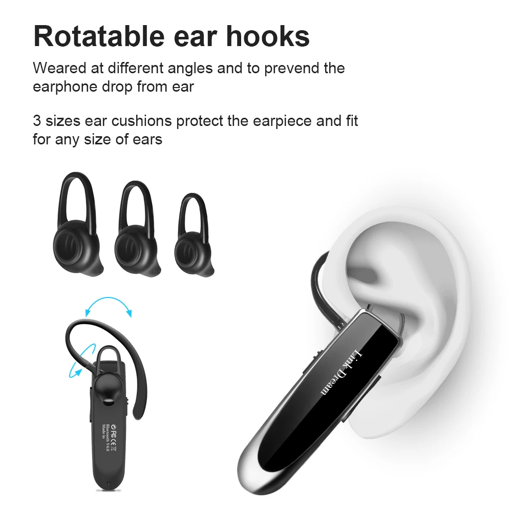 8. Удобный дизайн-Link Dream Bluetooth легкий (12 г), что делает его лучшим выбором дляБизнесмены и водители. Вы можете носить гарнитуру на левом или правом ухе и иметь функцию вращения на 360 °.
