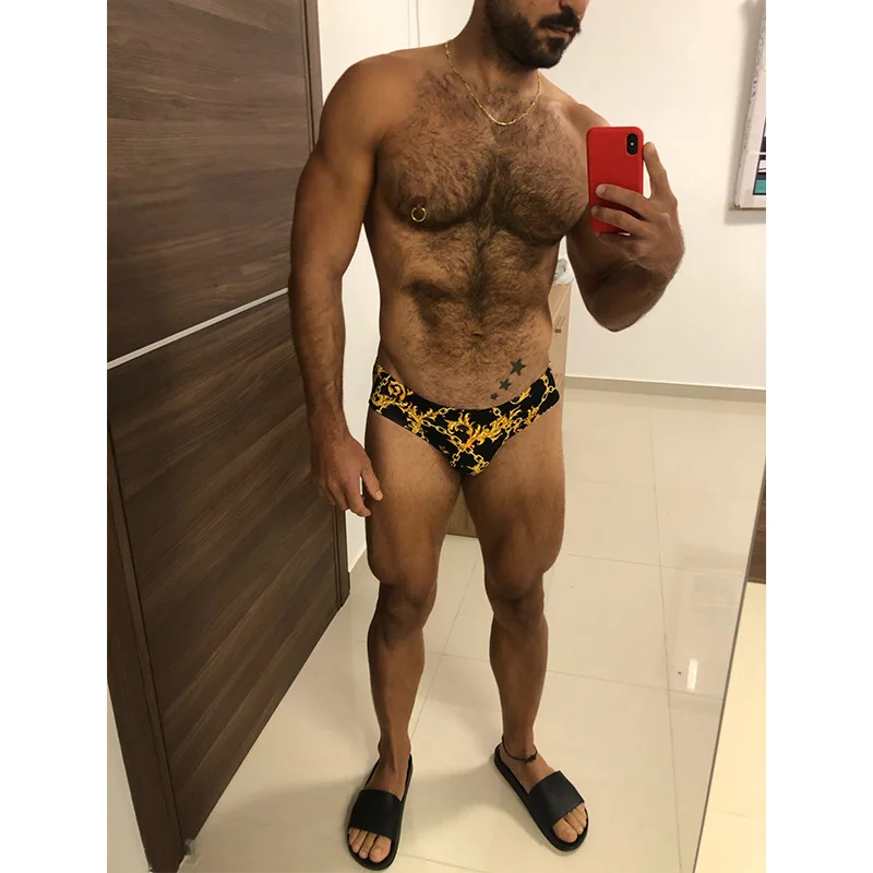 Купальный костюм мужской с принтом, пикантные трусы пуш-ап с низкой...