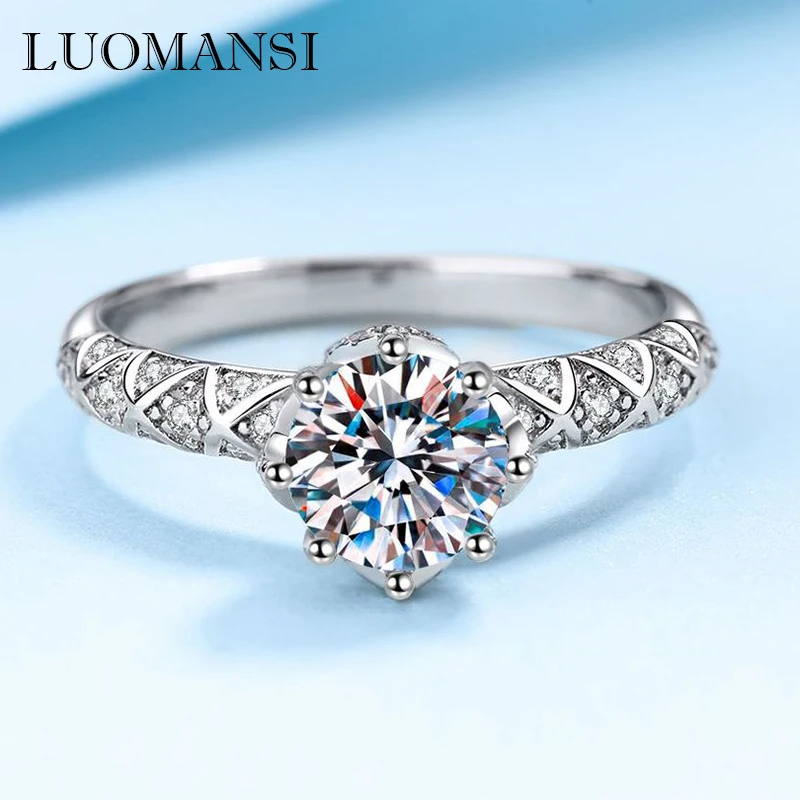 Luomansi S925 серебро 1 карат 6,5 мм VVS1 королева колец с муассани...