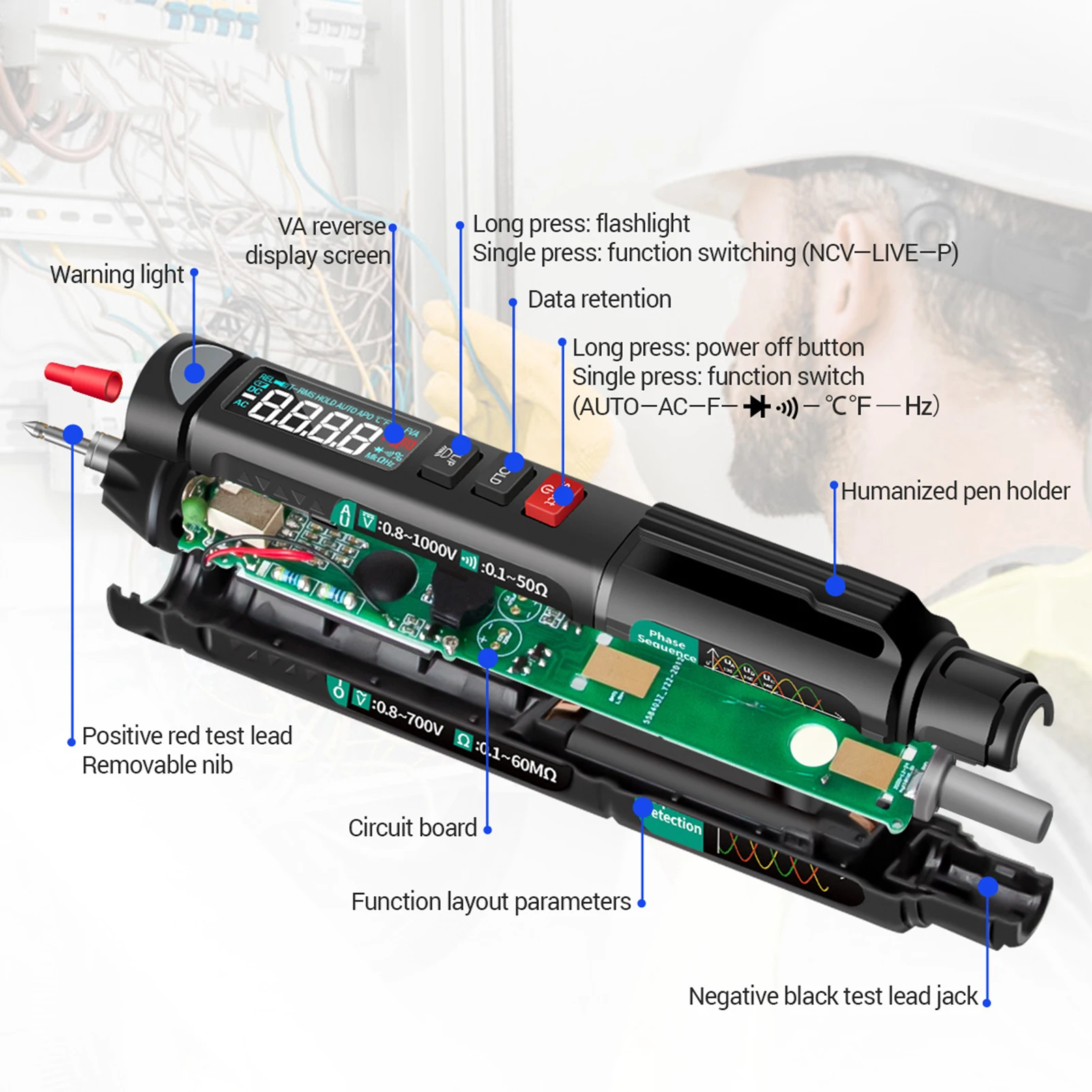 Цифровой мультиметр A3007A3008, Бесконтактный мультиметр с ручкой, 6000 отсчетов