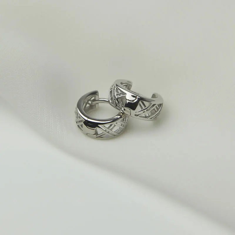 Серьги-кольца серебряные в двух рядов с цирконом, квадратной и круг...