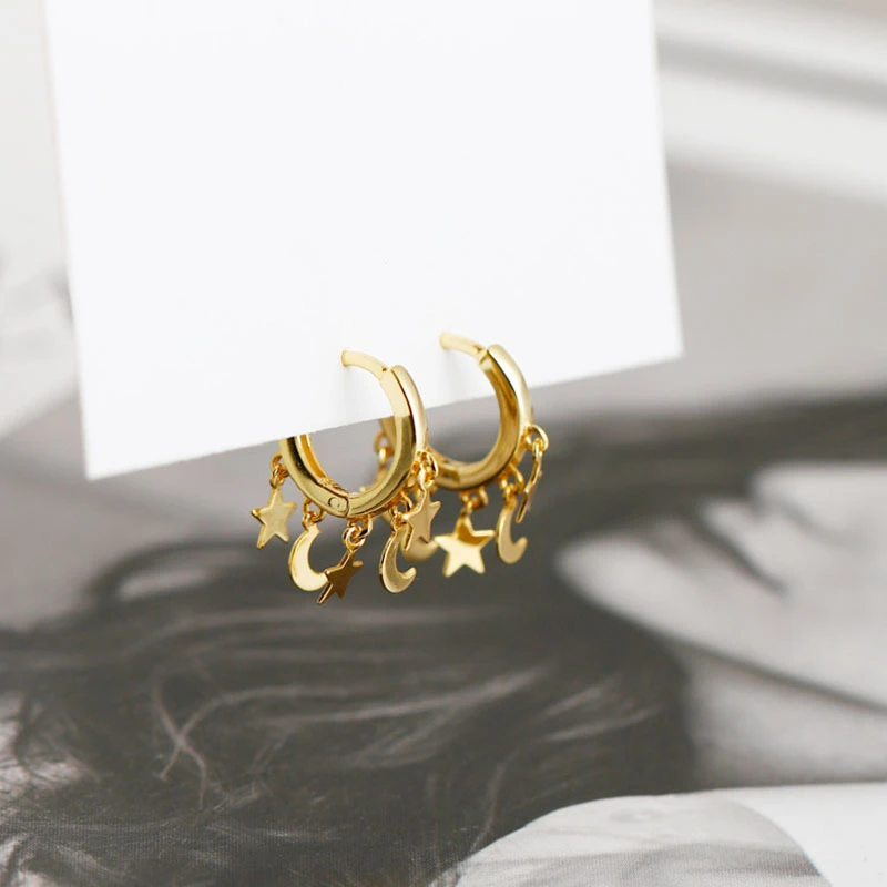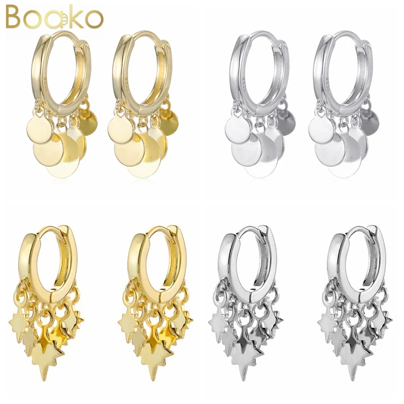 Женские серьги-кольца BOAKO, элегантные серьги-кольца с фианитами в виде звезд, Луны, Листьев, шара, свадебные украшения для девочек