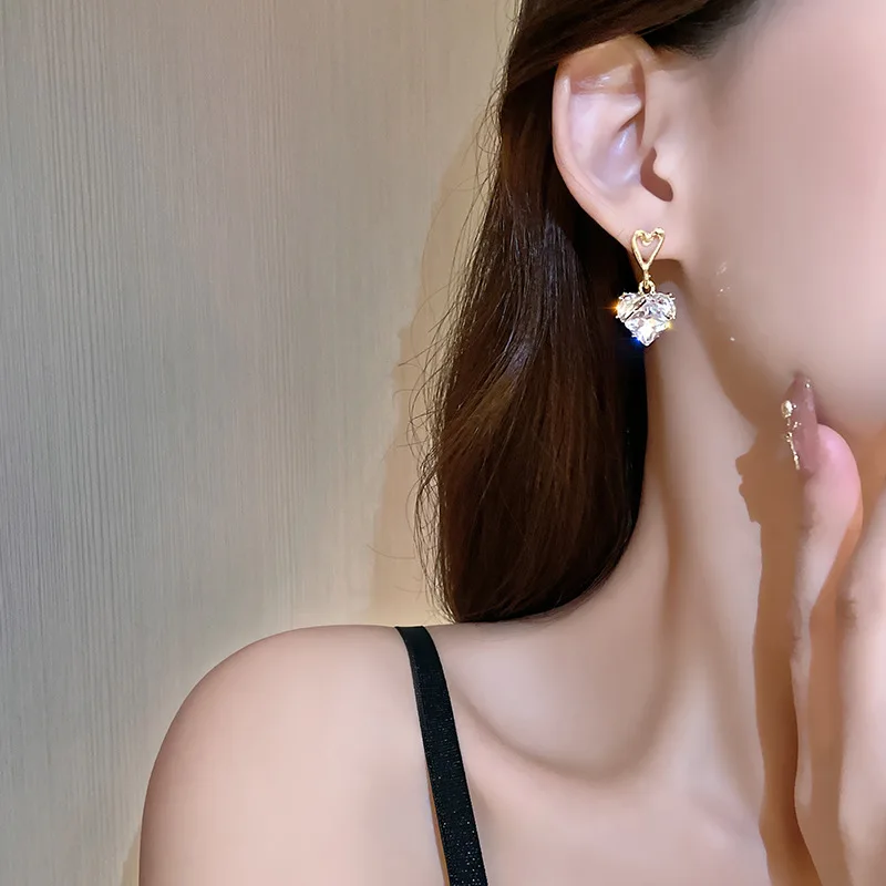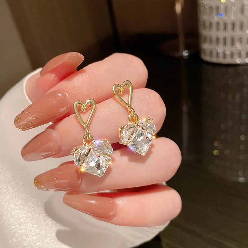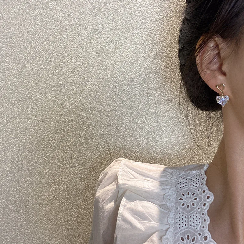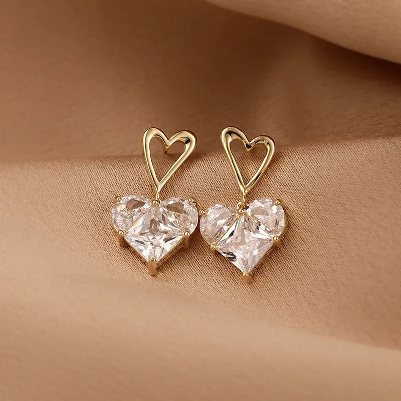 Висячие серьги с маленьким сердцем и фианитами для девочек и женщин, милые геометрические серьги с отверстиями, характерные украшения, 2021