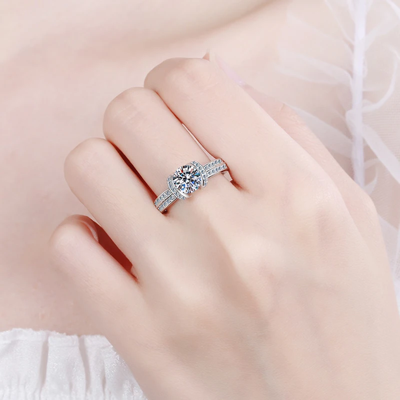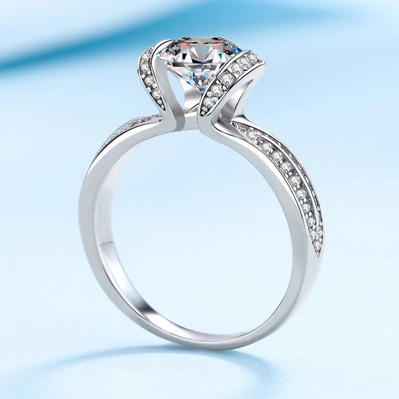 Женское классическое кольцо из серебра 18 К с муассанитом 1-5 карат