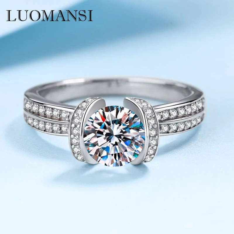Luomansi 2 карата 3 карата 9 мм Муассанит серебряное кольцо с серти...