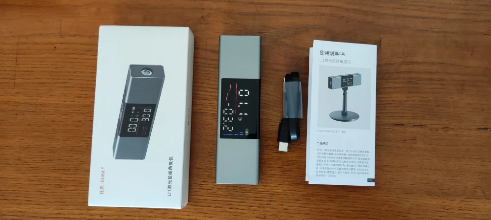 * Двойная лазерная проекционная линия* Двойной СВЕТОДИОДНЫЙ цветной экран* ± 0,5 градусов измерение* Быстрая зарядка аккумулятора типа C* 95g портативный* С подставкой на 360 градусов (необходимо выбрать подставку)