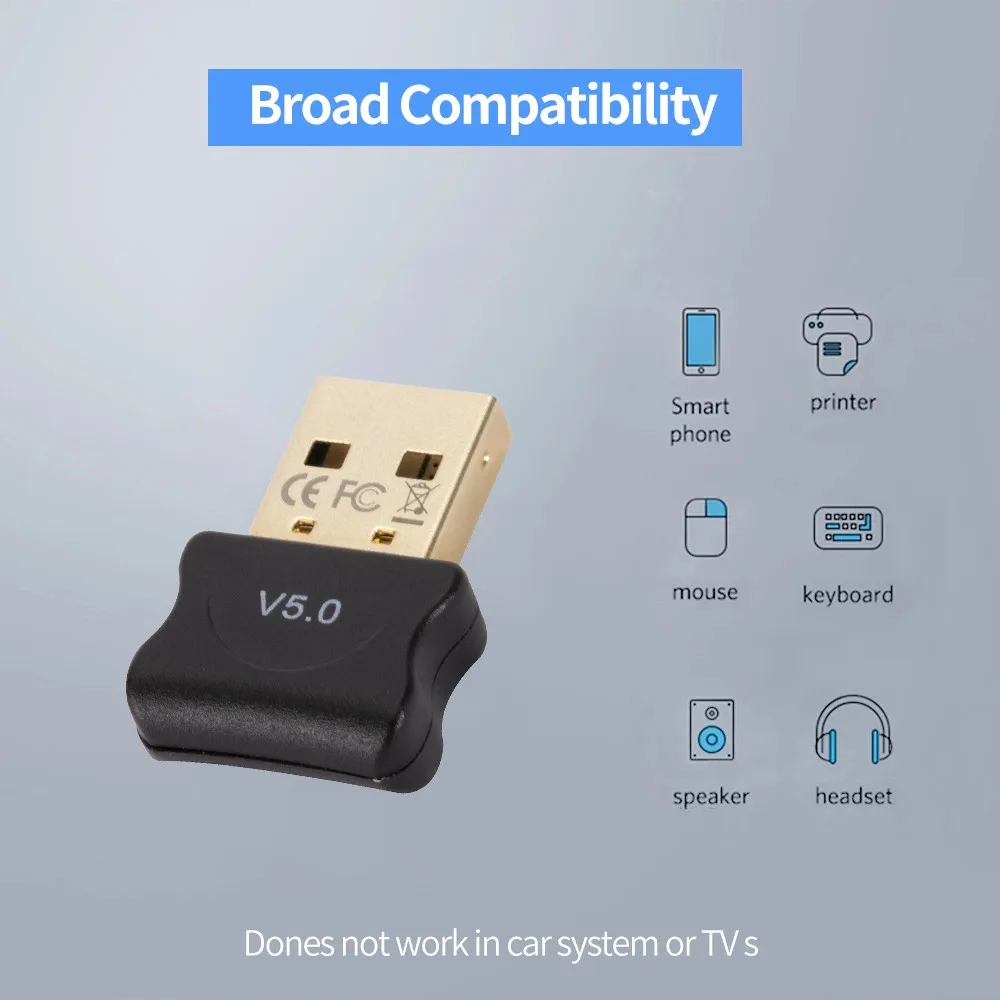 Технические характеристики:Полностью совместим с Bluetooth-совместимыми 2,0, Bluetooth-совместимыми 2,1, Bluetooth-совместимыми 3,0, Bluetooth-совместимыми 4,0 и Bluetooth-совместимыми 4,2 спецификациями.Соответствует Bluetooth-совместимым 5,0 техническим спецификациям, Двухрежимная передача.Дальнее Расстояние передачи: 100 м дальнее расстояние передачи (без блокировки), сильный сигнал.Скорость передачи данных 24 Мбит/с, обеспечивая стабильную и высокоскоростную передачу файлов и аудиоданных.Интеллигентая (ый) sleep wake-up, энергосберегающая, 24-битный CRC проверьте, чтобы противостоять помех, Адаптивная псевдослучайного изменения рабочей частоты для того, чтобы уменьшить помехи.Название товара: bluetooth-адаптерМатериал: пластик + металлВерсия Bluetooth: 5,0Интерфейс: USB 2,0Совместимая система: для Windows XP/Win7/Win8/Win8.1/Win10Особенности: мини, подключи и играй, высокая скорость, легко носить с собойРазмер: 13 мм x 14 мм x 6 мм/0,51 ''x 0,55'' x 0,24 ''(прибл.)Примечания:Не подходит для всех устройств IOS, включая Mac, iPad и iPhone, он не может работать в автомобильной стереосистеме или ТВ или Linux!Из-за разницы в освещении и настройках экрана цвет товара может немного отличаться от изображения.Возможны незначительные отклонения в размерах из-за различных измерений вручную.Пакет включает в себя:1 x Bluetooth адаптер