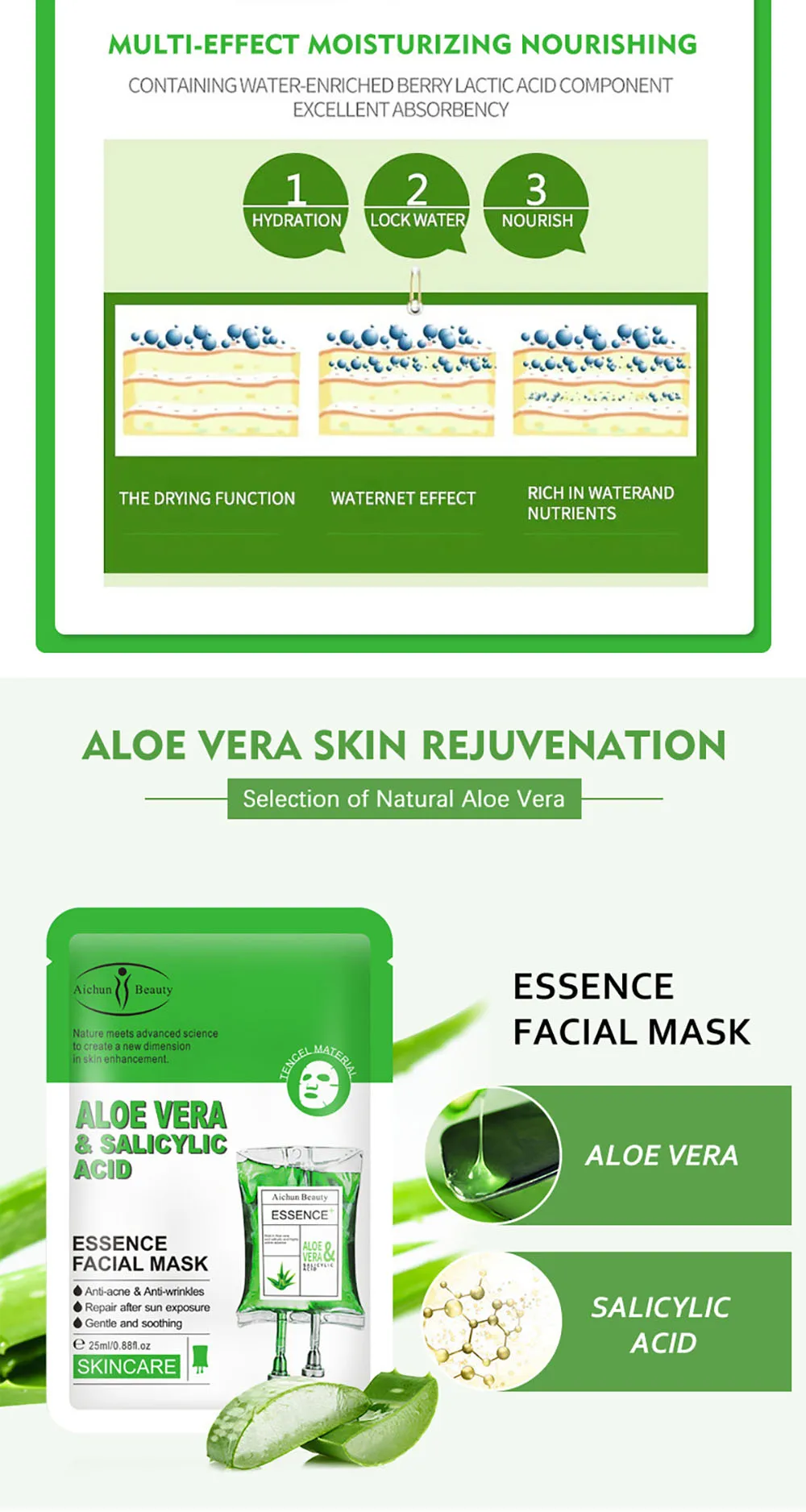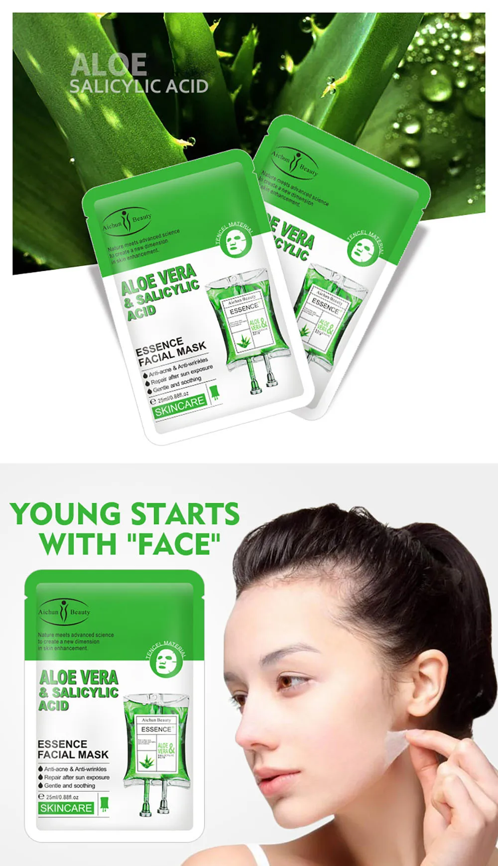 10 шт., маска для лица с экстрактом алоэ и салициловой кислоты