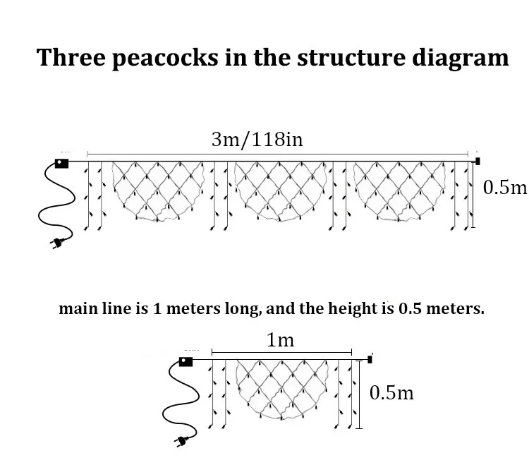 Уличная Гирлянда-занавес в виде павлина, 3 м, 4, 14 светодиодов, 3 ...